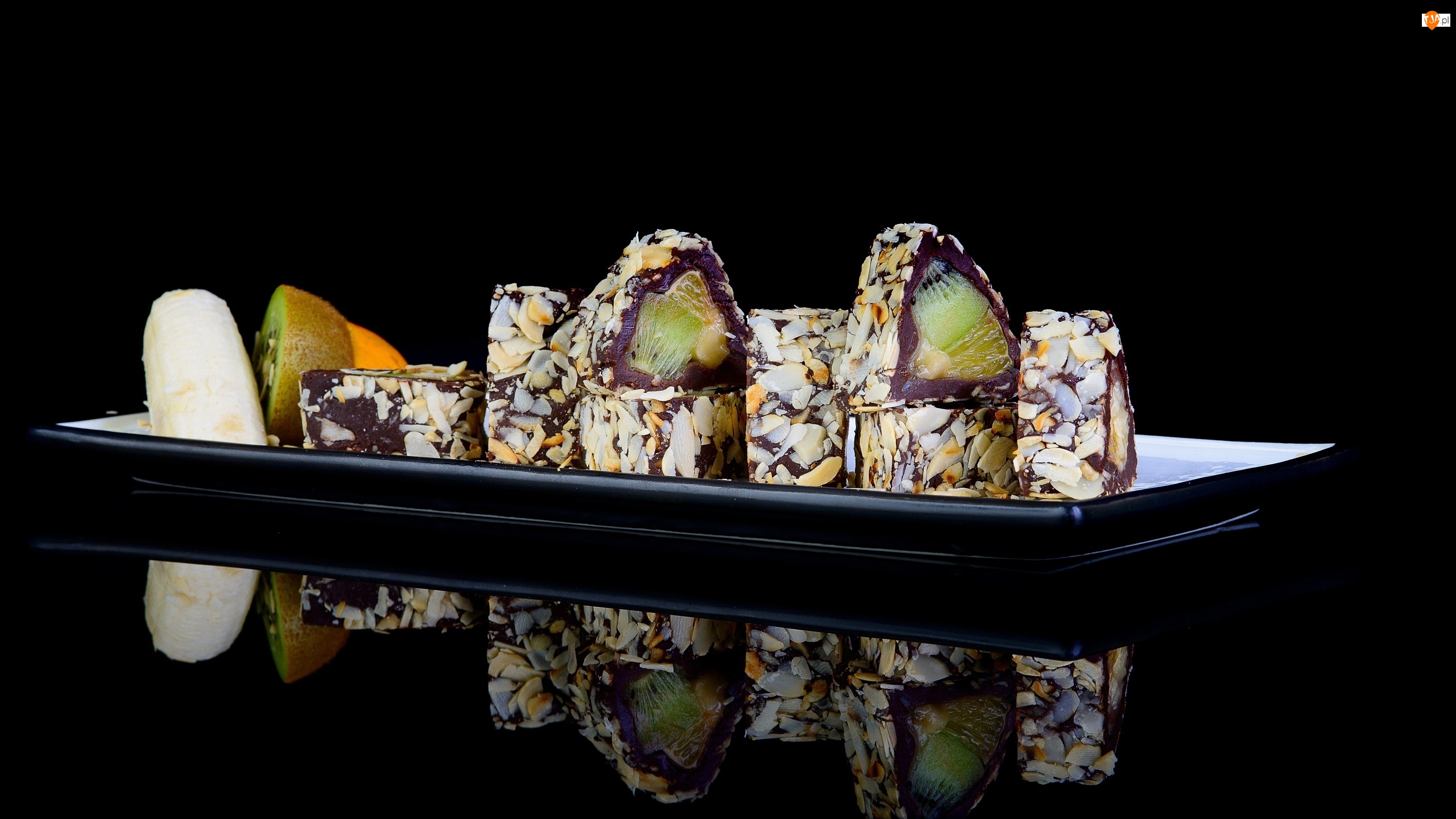 Ciemne, Deser, Kiwi, Tło, Ciasto, Banan, Odbicie, Kawałki