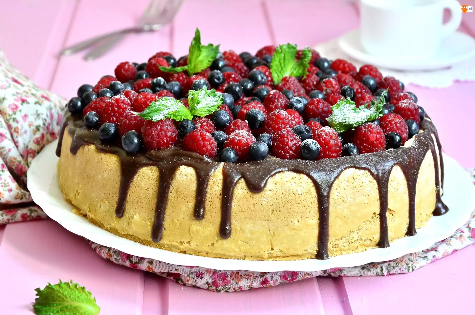 Owoce, Ciasto, Borówki, Czekoladowa, Maliny, Polewa