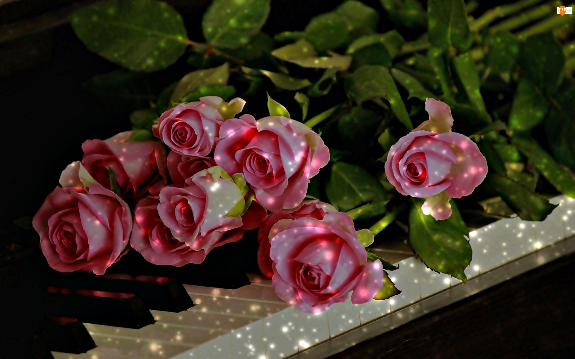 Cień, Różowe, Fortepian, Róże, Klawisze