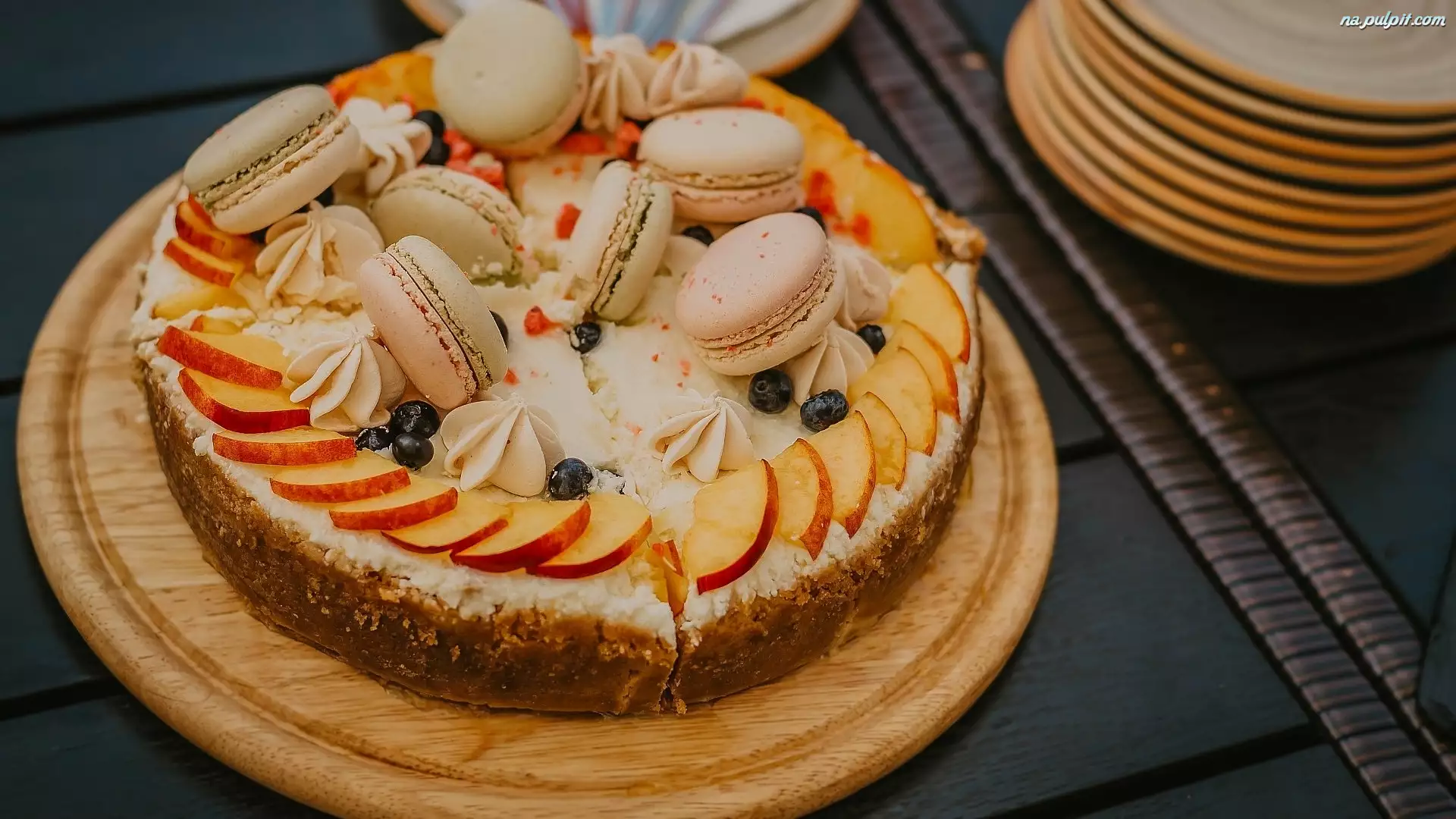 Krem, Deska, Owoce, Ciasto, Makaroniki