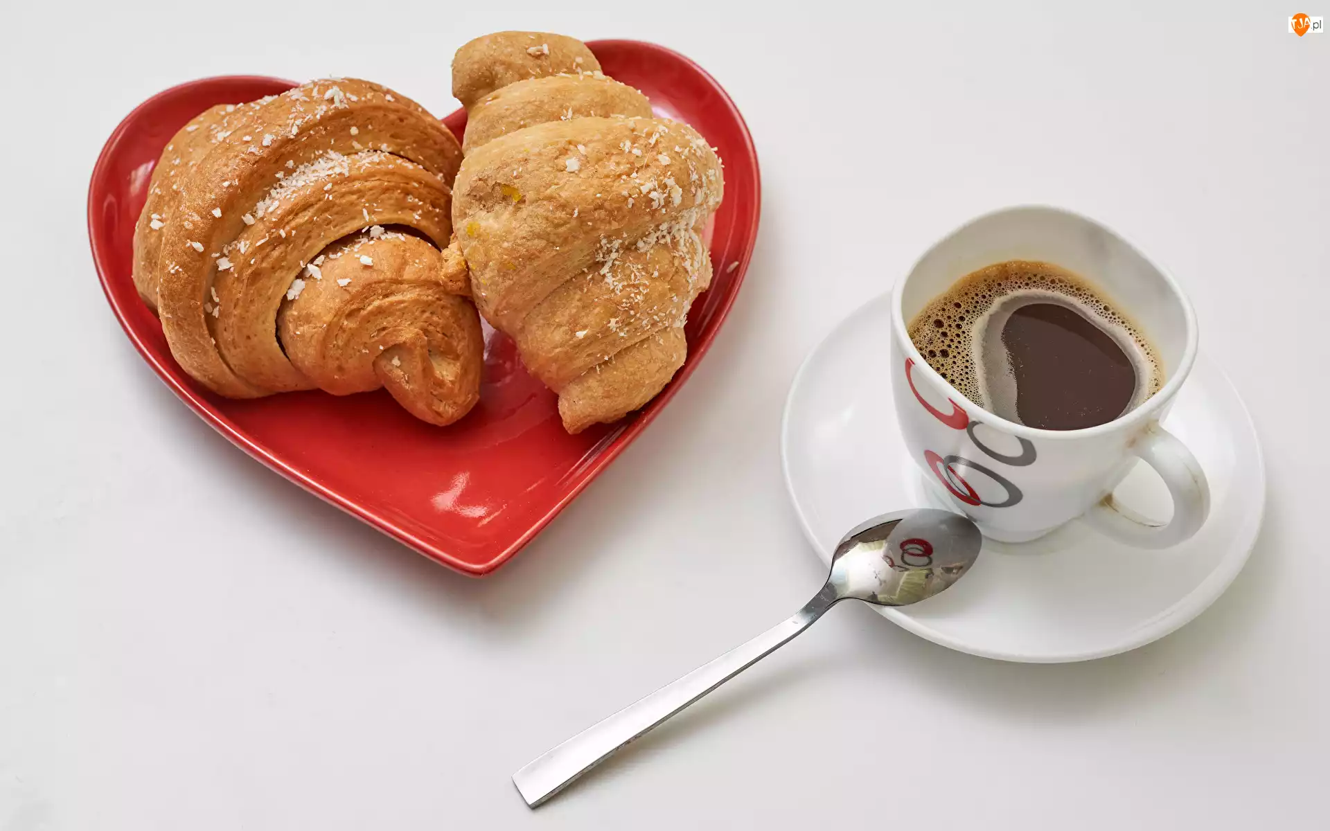 Croissanty, Rogale, Serce, Kawa, Łyżeczka, Spode