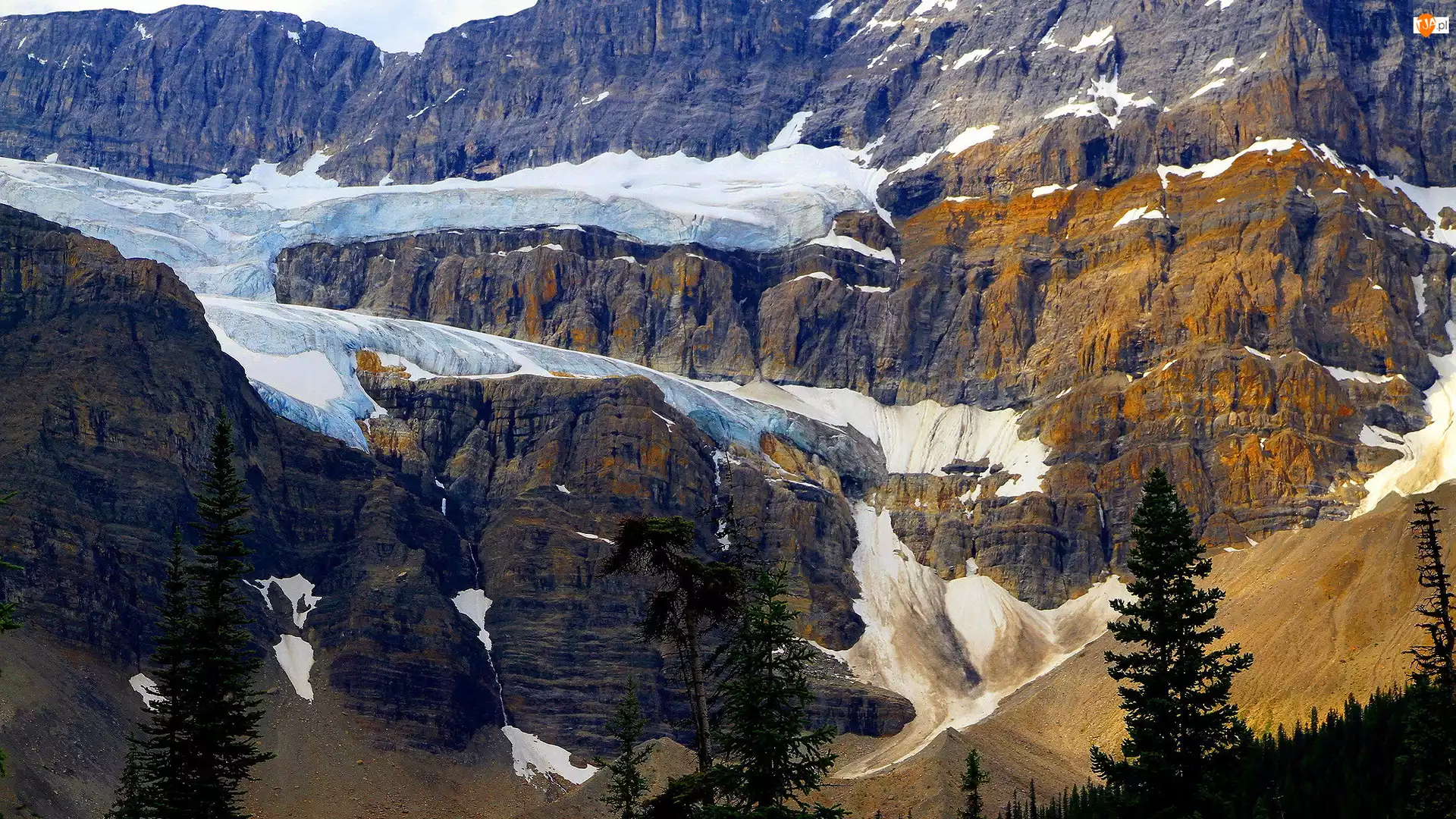 Crowfoot Glacier, Góry, Drzewa, Alberta, Crowfoot Mountain, Lodowiec, Kanada, Park Narodowy Banff