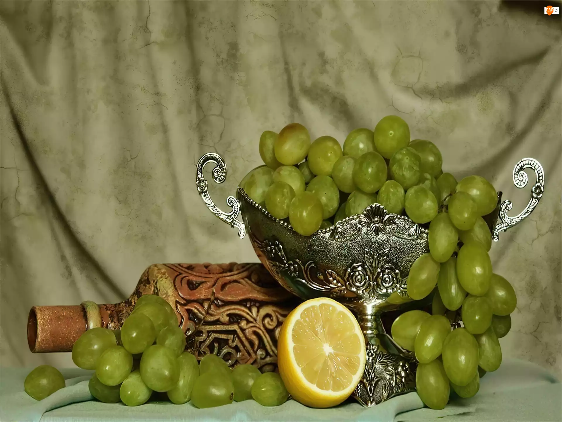 Cytryna, Waza, Ozdobna, Winogrona, Butelka