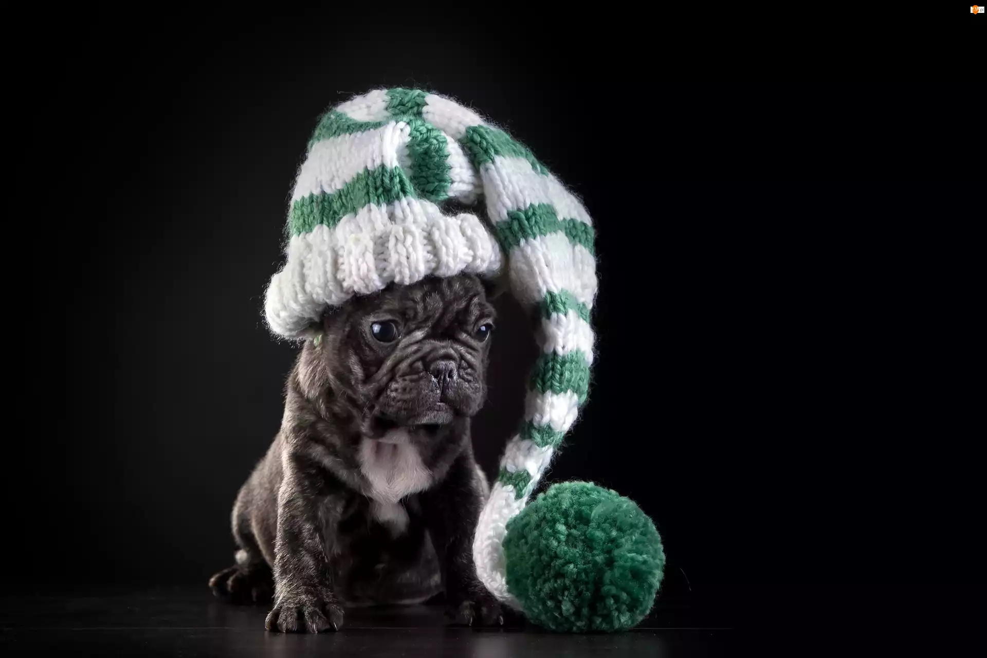 Buldog francuski, Szczeniak, Dzianina, Pies, Pompon, Czapka, Zimowa