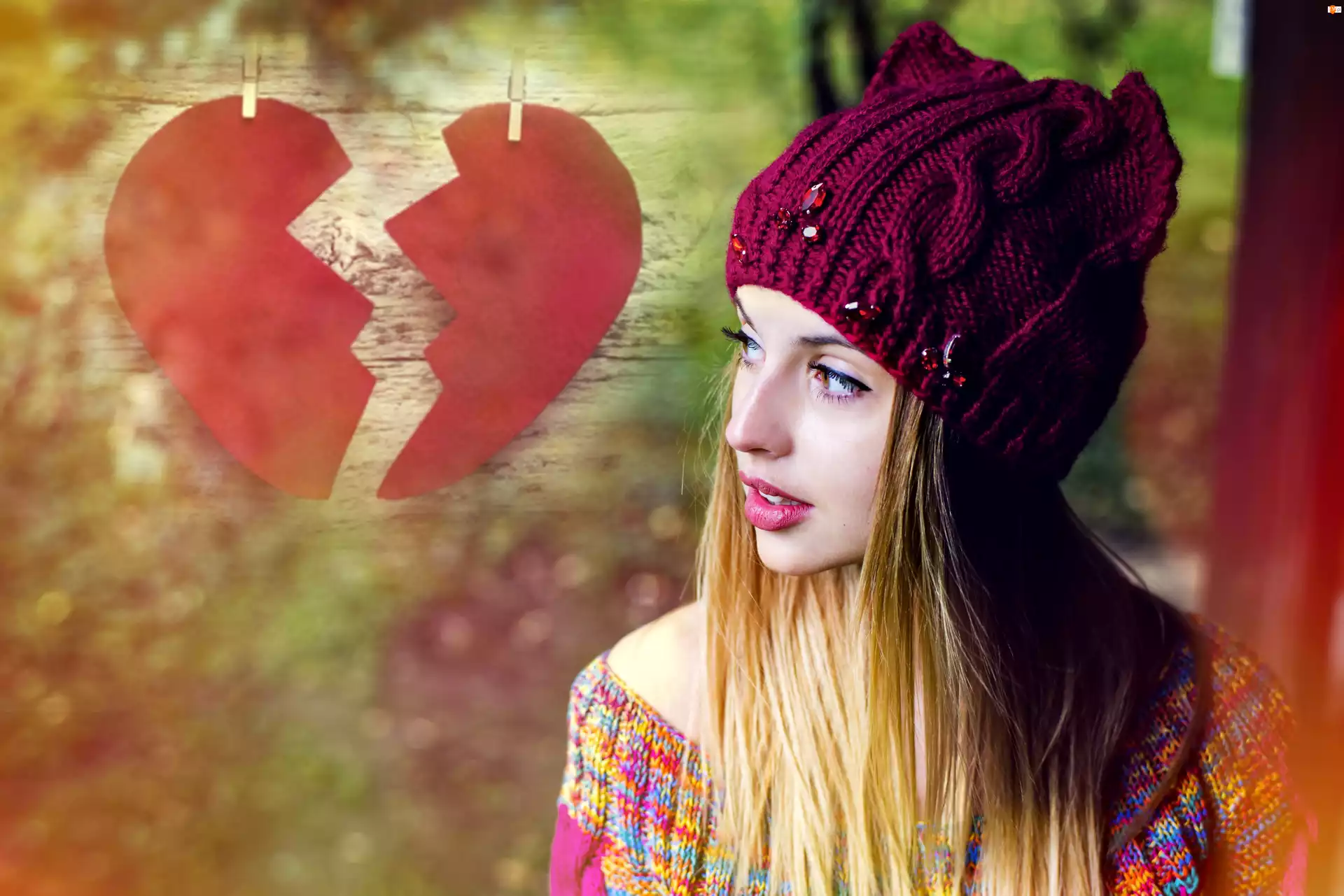 Czapka, Połówki, Kobieta, Serca, Blondynka, Dwie