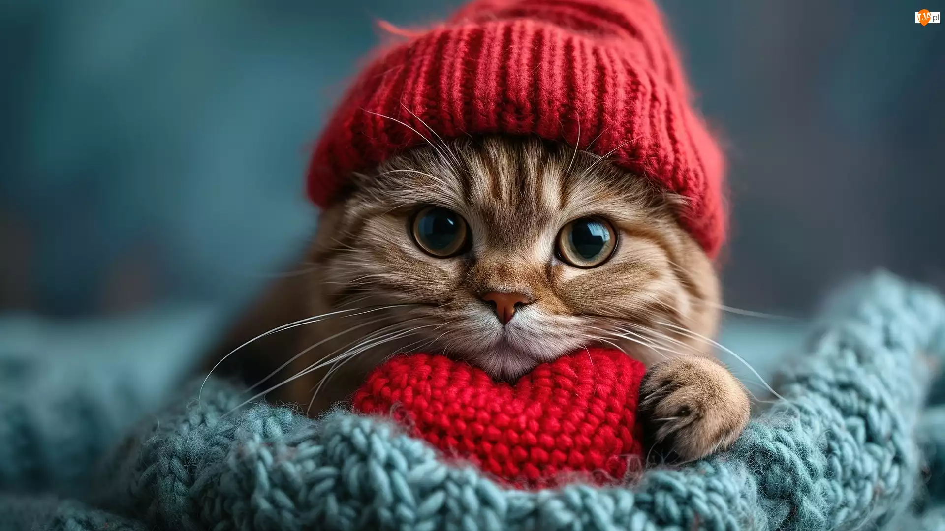 Czapka, Szalik, Czerwona, Kot, Czerwony