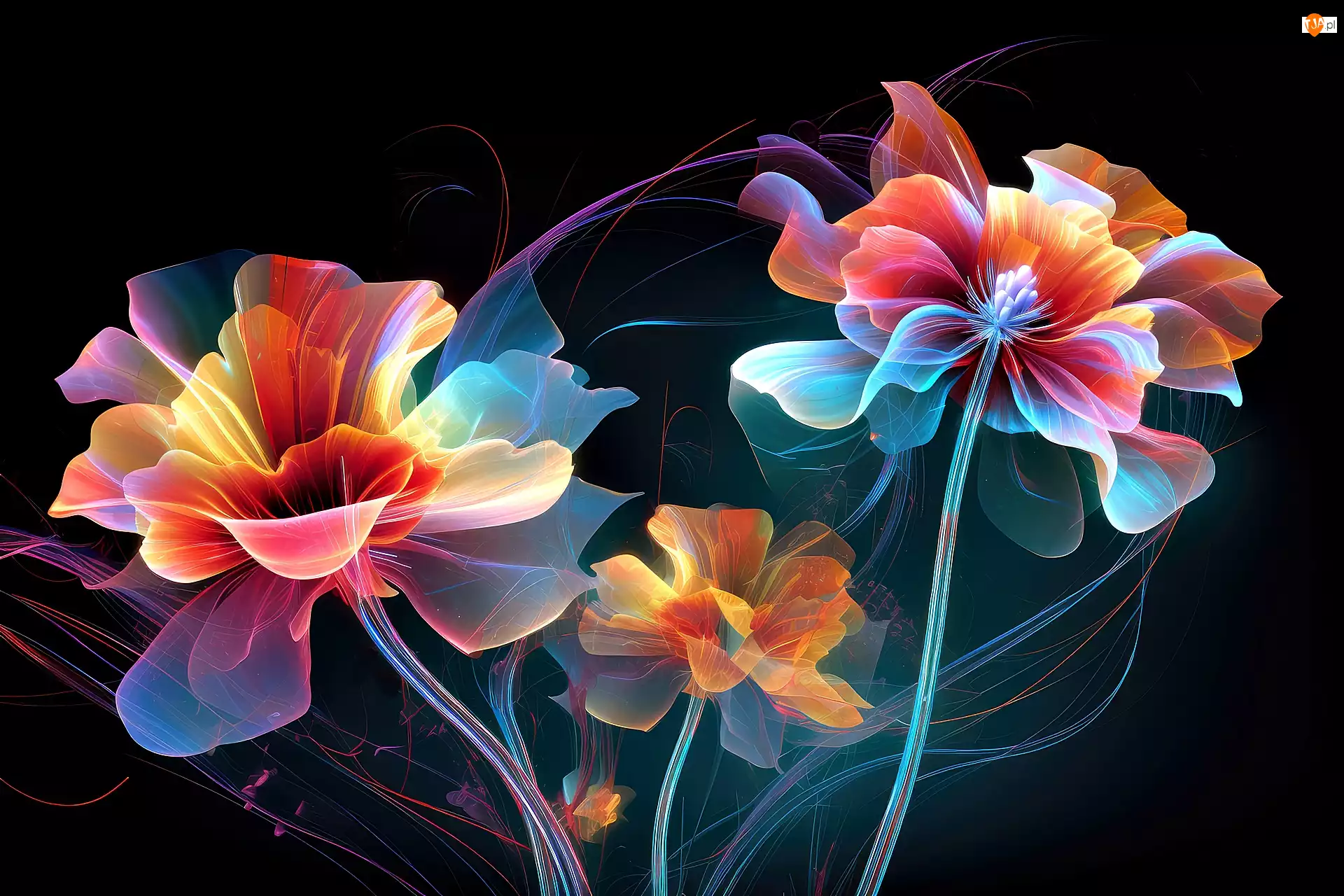 Czarne, Grafika, Kolorowe, Kwiaty, Tło