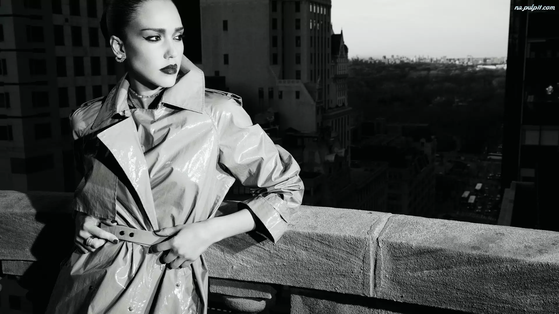 Czarno-białe, Aktorka, Jessica Alba, Płaszcz