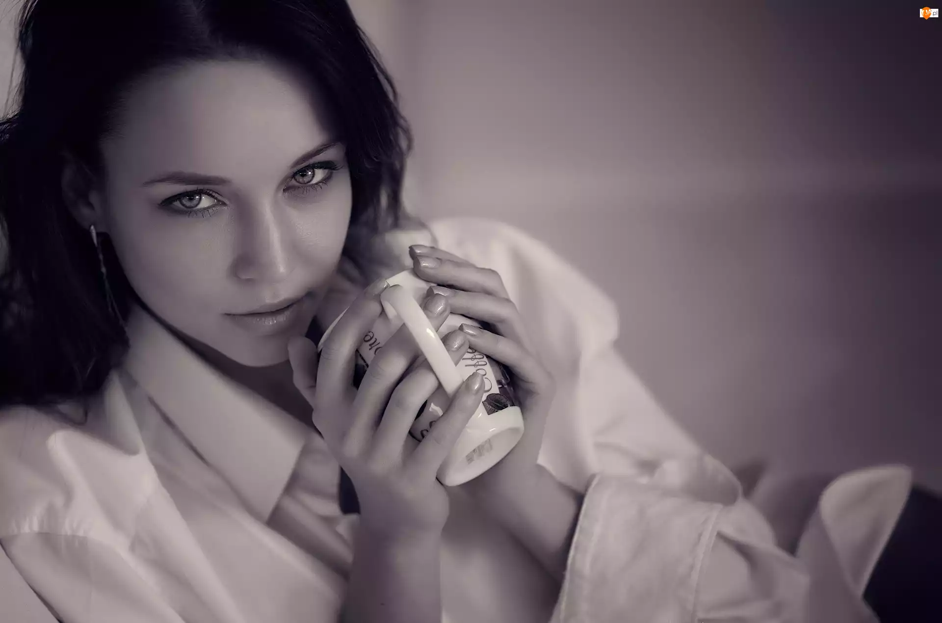 Czarno-Białe, Kobieta, Makijaż, Kubek