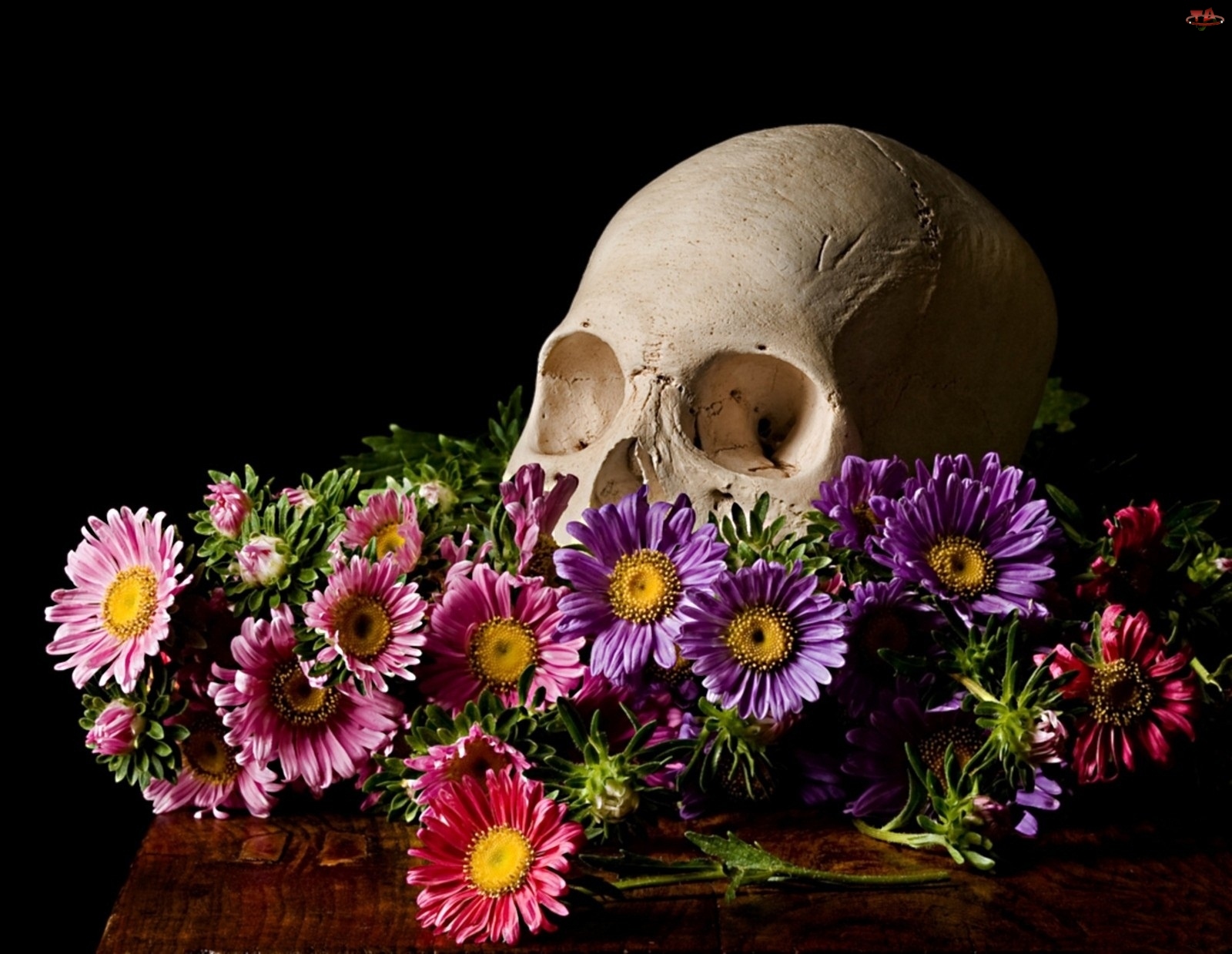 Czaszka, Kolorowe, Astry