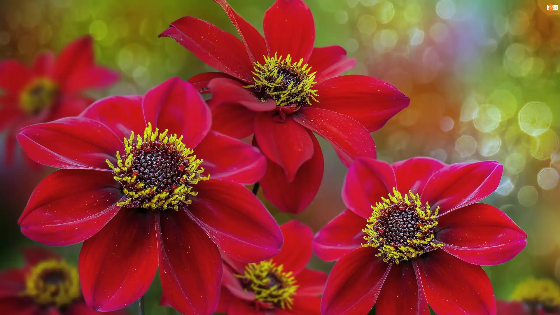 Dalie, Czerwone, Kwiaty