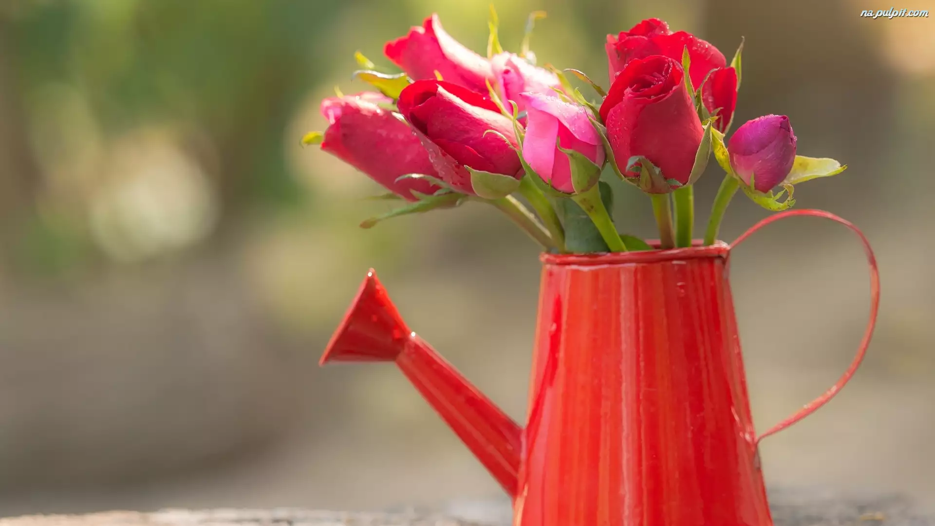 Czerwone, Pąki, Konewka, Czerwona, Róże