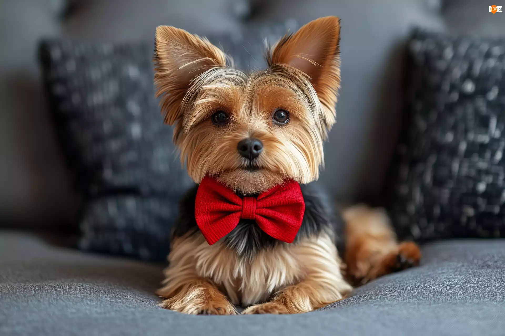 Czerwona, Poduszki, Yorkshire terrier, Pies, Muszka