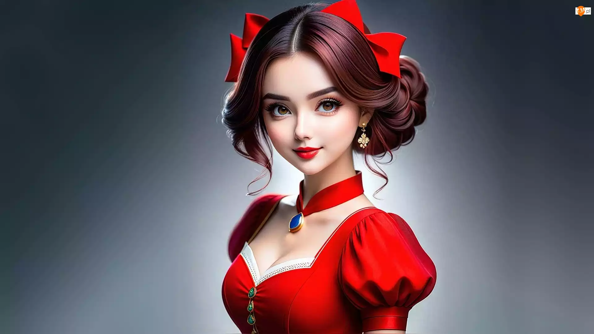 Czerwona, Szminka, Kokardy, Dziewczyna, Czerwone, Sukienka, Czerwona