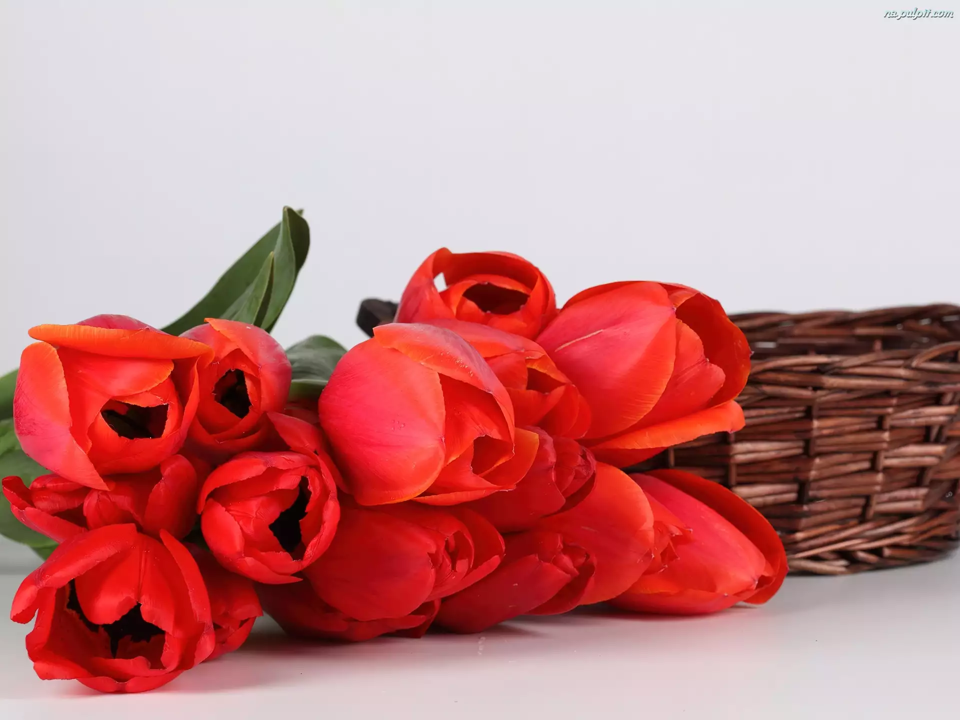 Kosz, Czerwone, Tulipany, Wiklinowy