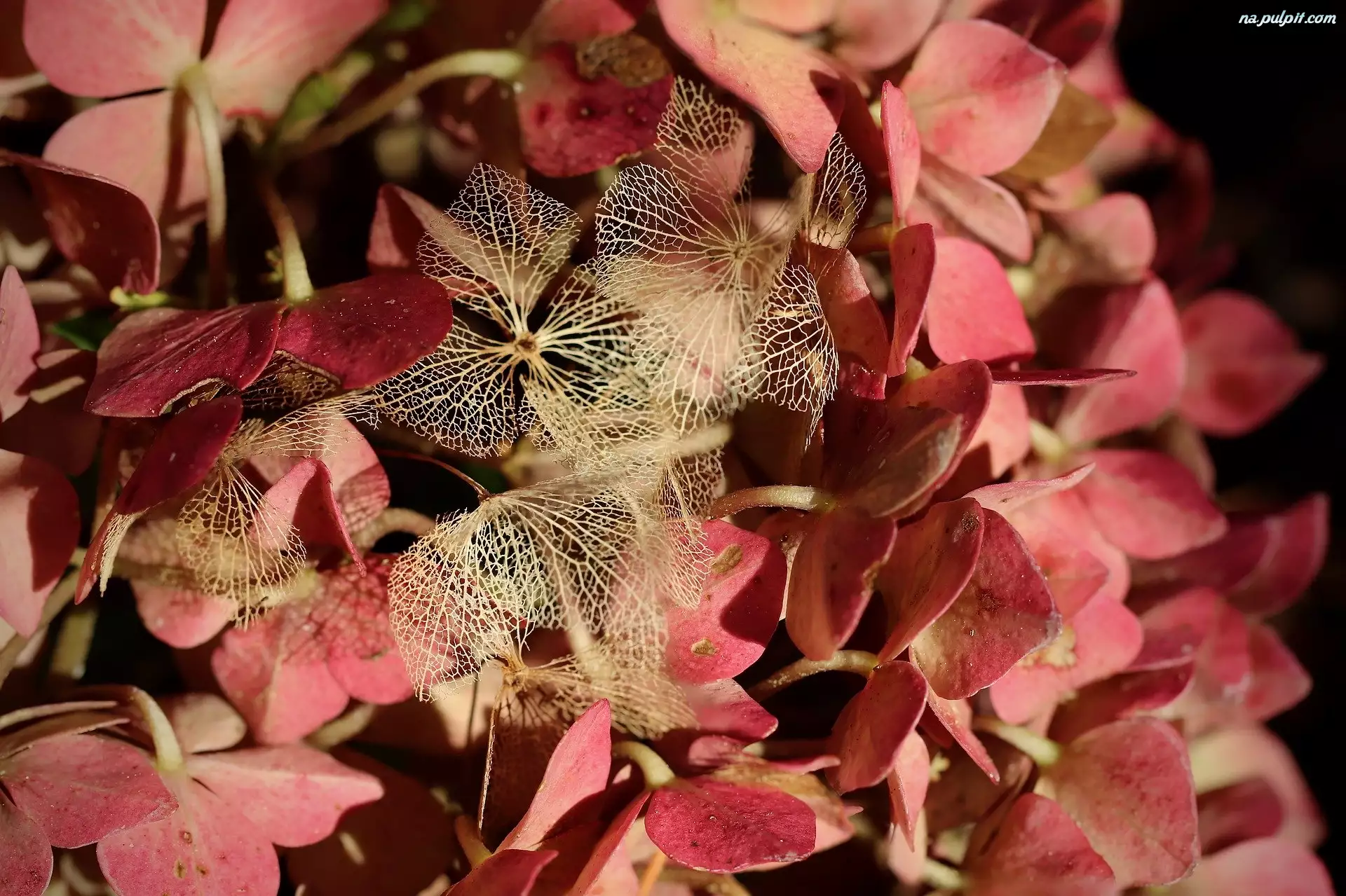 Zbliżenie, Kwiaty, Czerwona, Hortensja