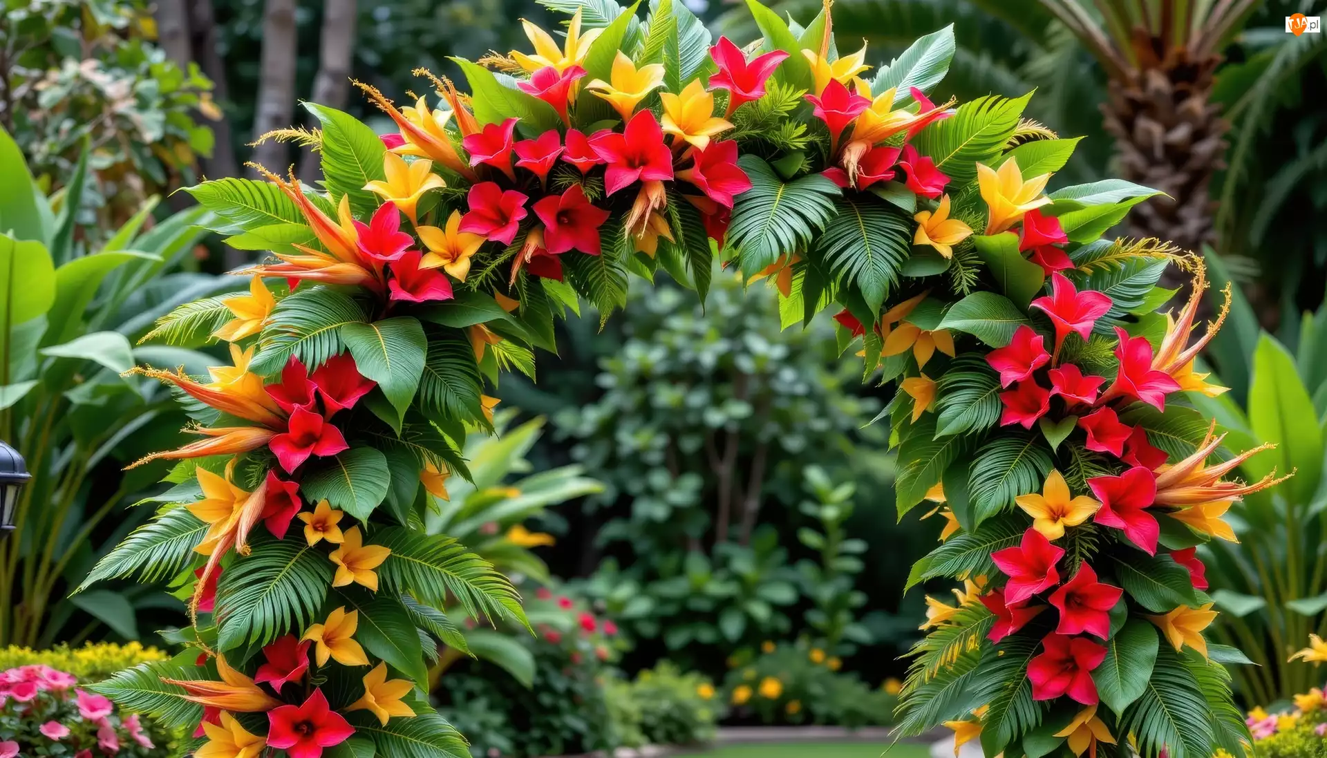 Czerwone, Kwiaty, Liście, AI, Żółte, Łuk