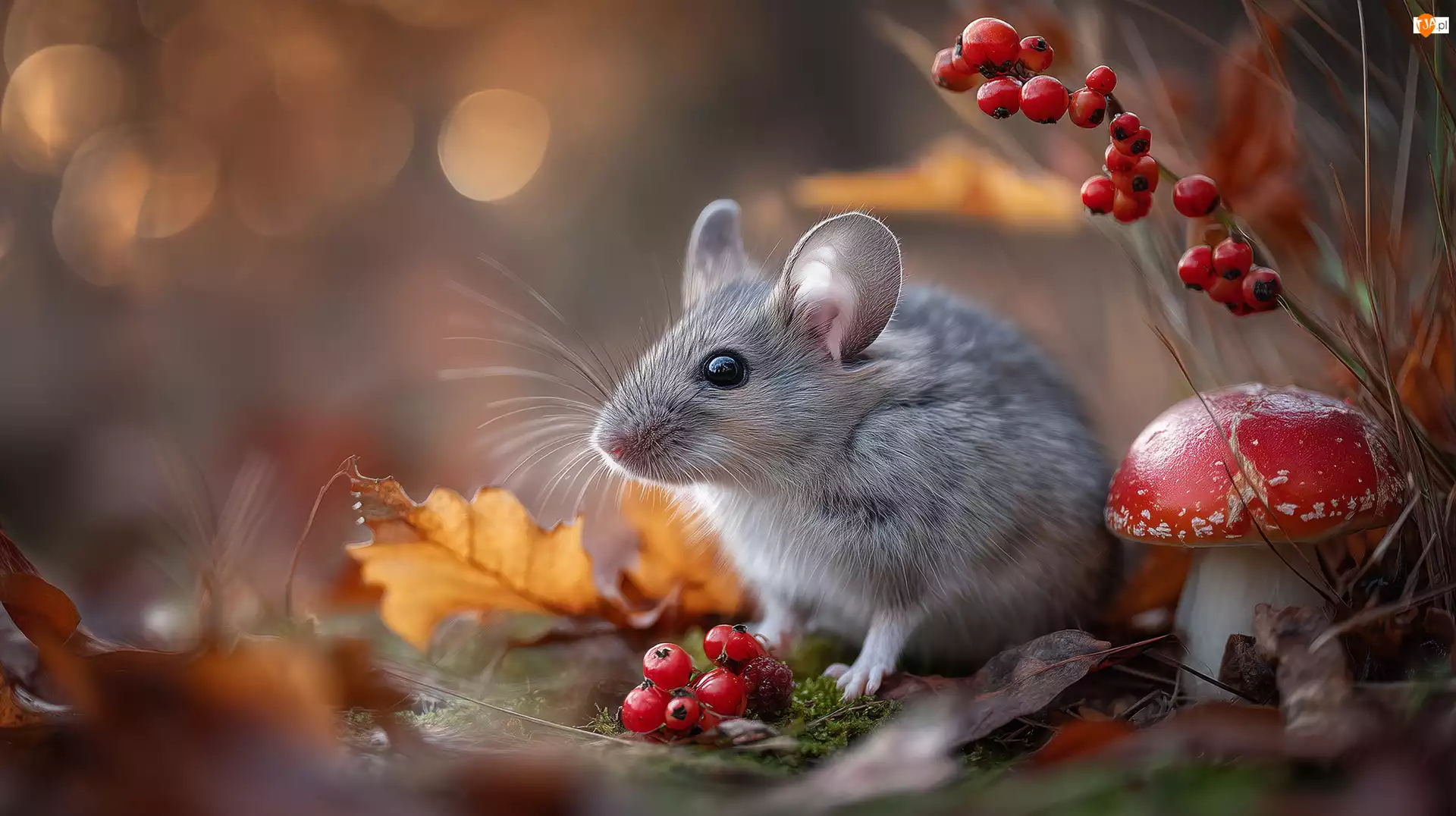 Czerwone, Myszka, Muchomor, Grafika AI, Owoce, Tra