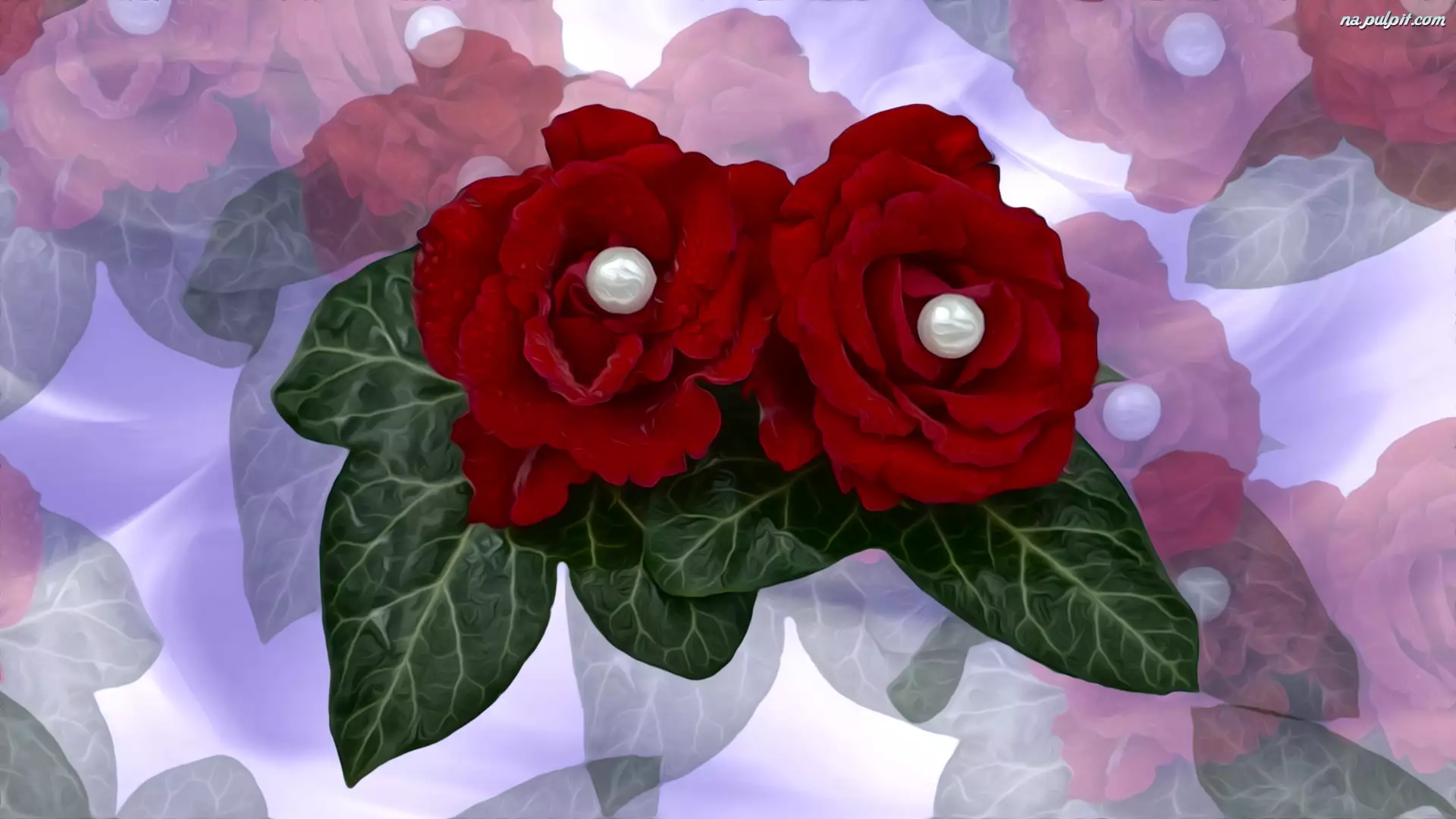 Róże, Perełki, Kwiaty, Grafika, Listki