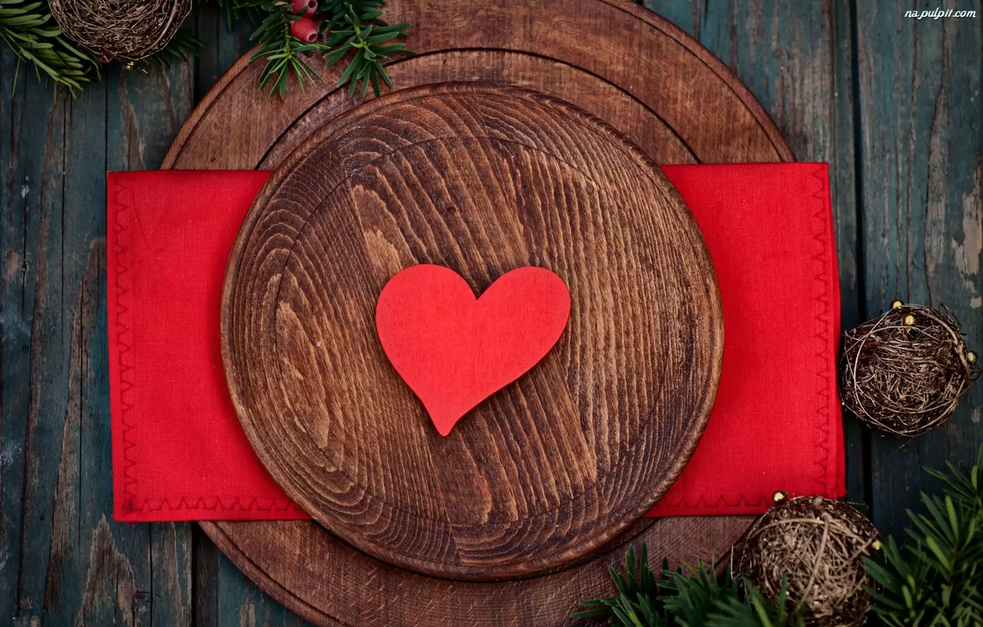 Drewniane, Talerze, Miłość, Serweta, Uczucie, Czerwone, Serduszko