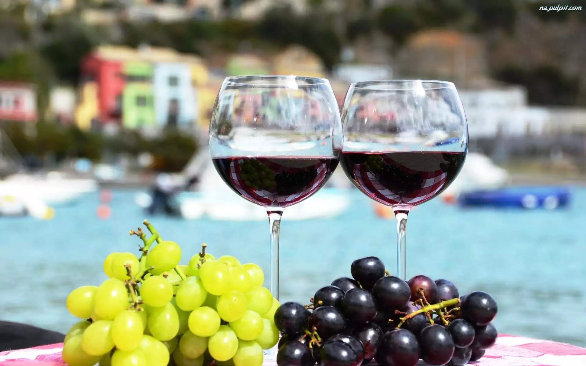 Czerwone, Winogrona, Kieliszki, Dwa, Wino