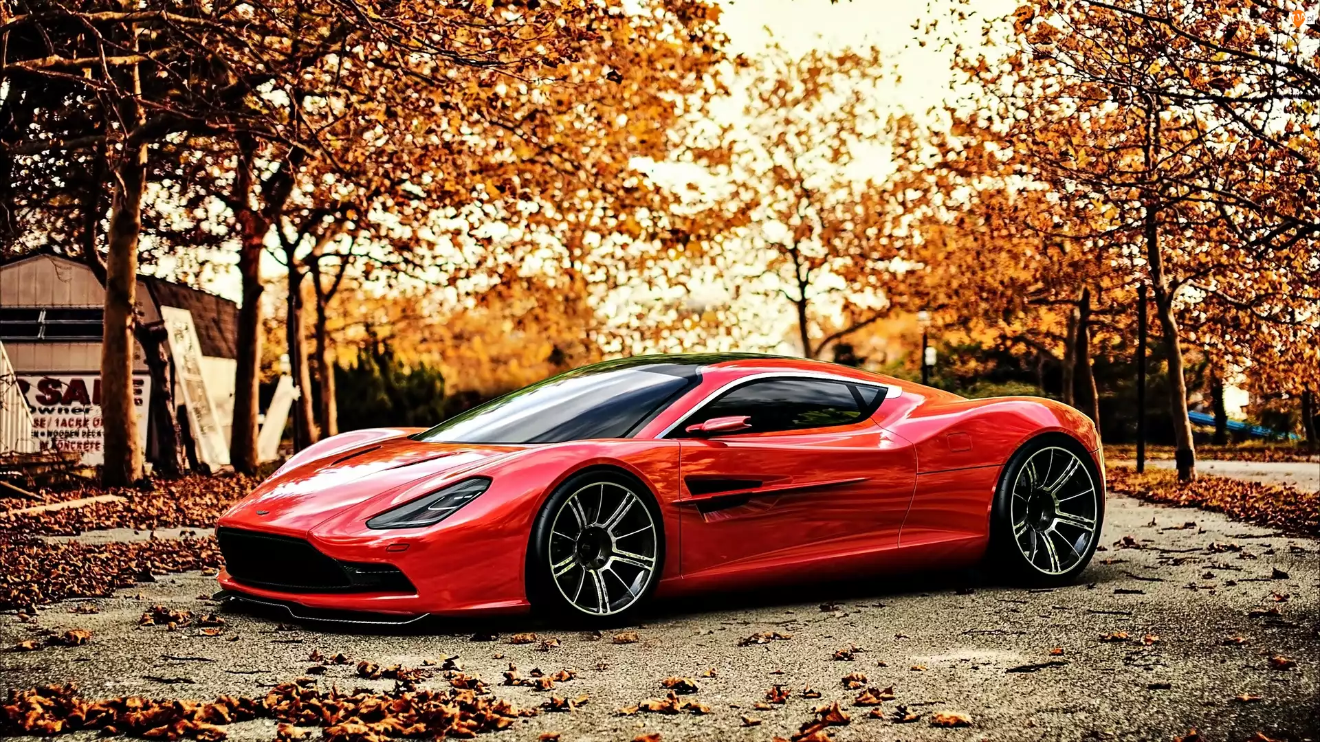 DBC, Aston Martin, Drzewa, Jesień, Czerwony, Droga