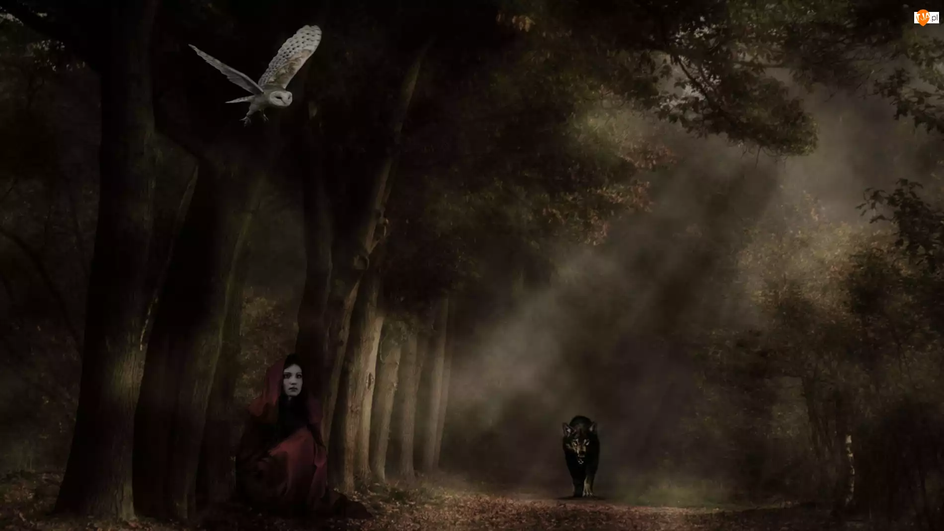 Czerwony kapturek, Las, Wilk, Sowa