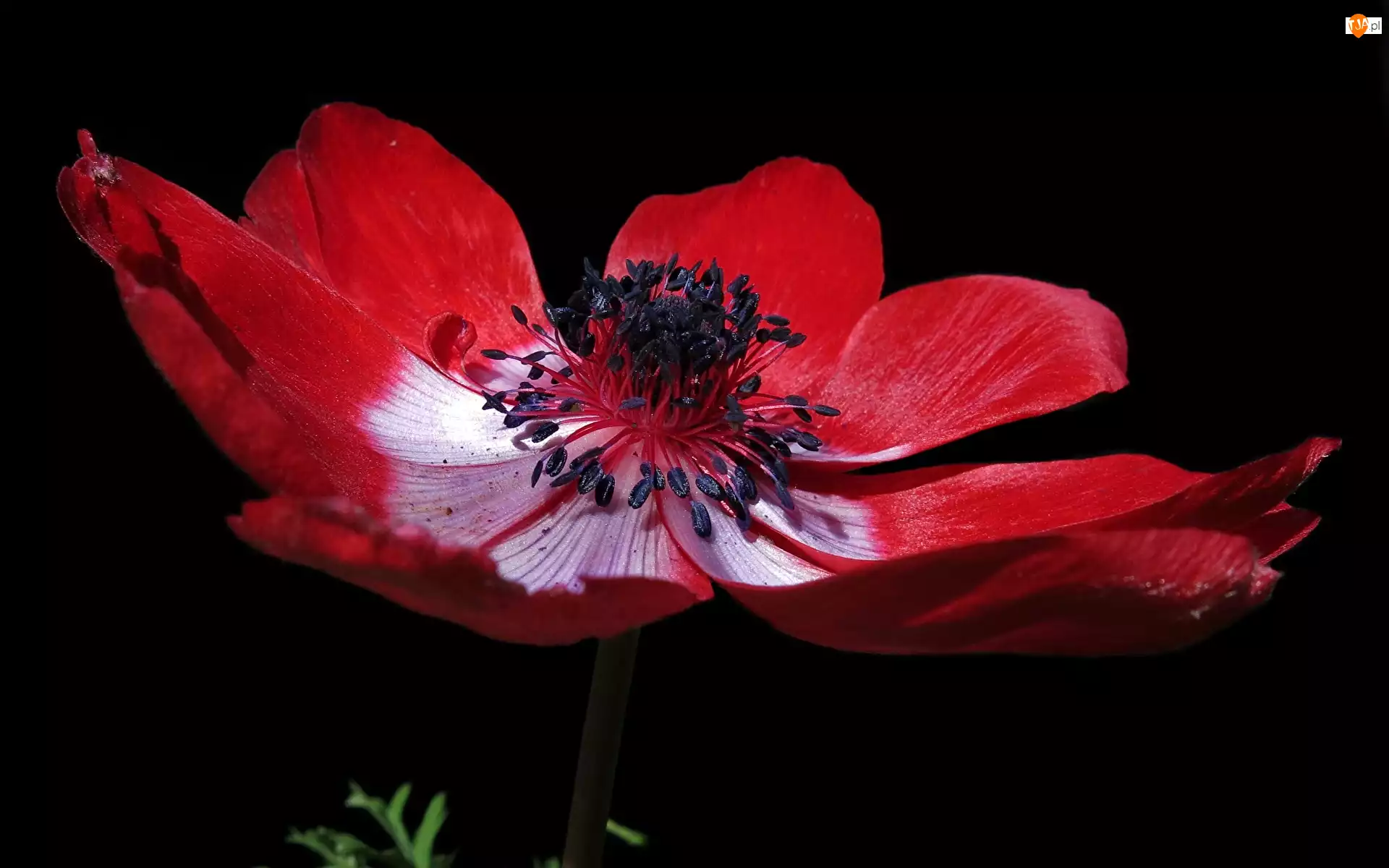 Czerwony zawilec na ciemnym tle