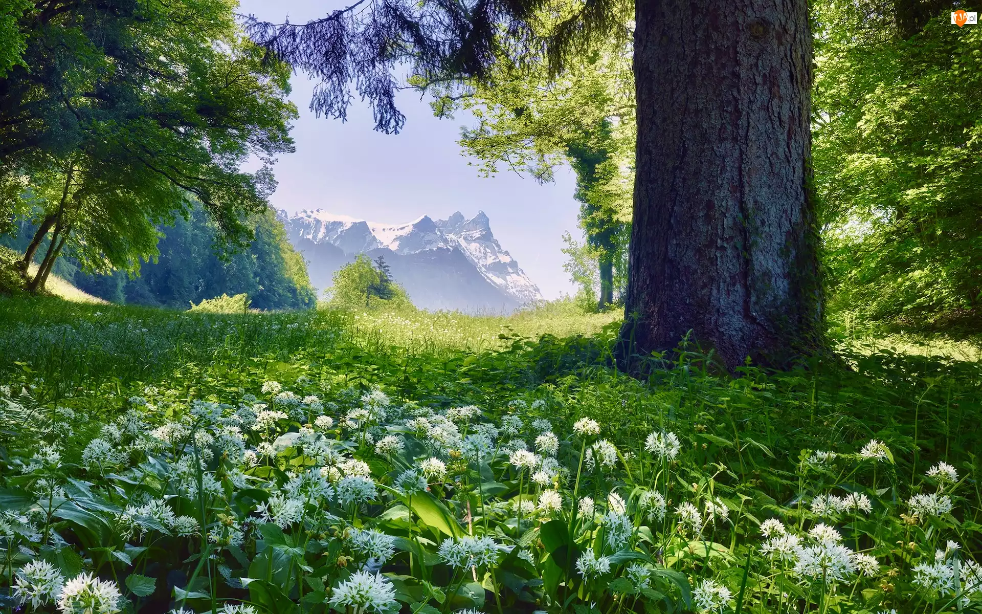 Wiosna, Drzewo, Góry, Czosnek niedźwiedzi