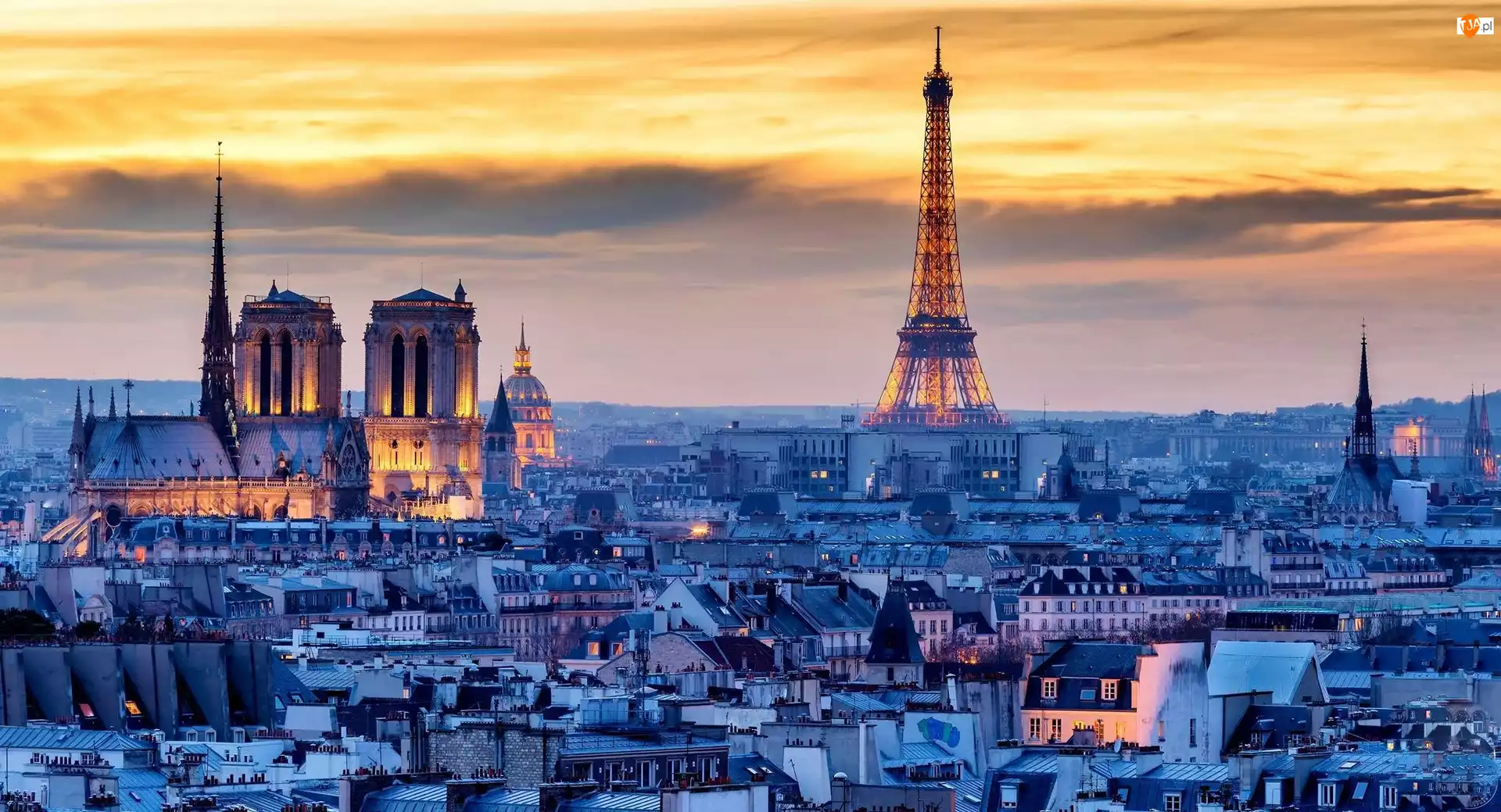 Dachy, Paryż, Wieża, Francja, Eiffla, Domów