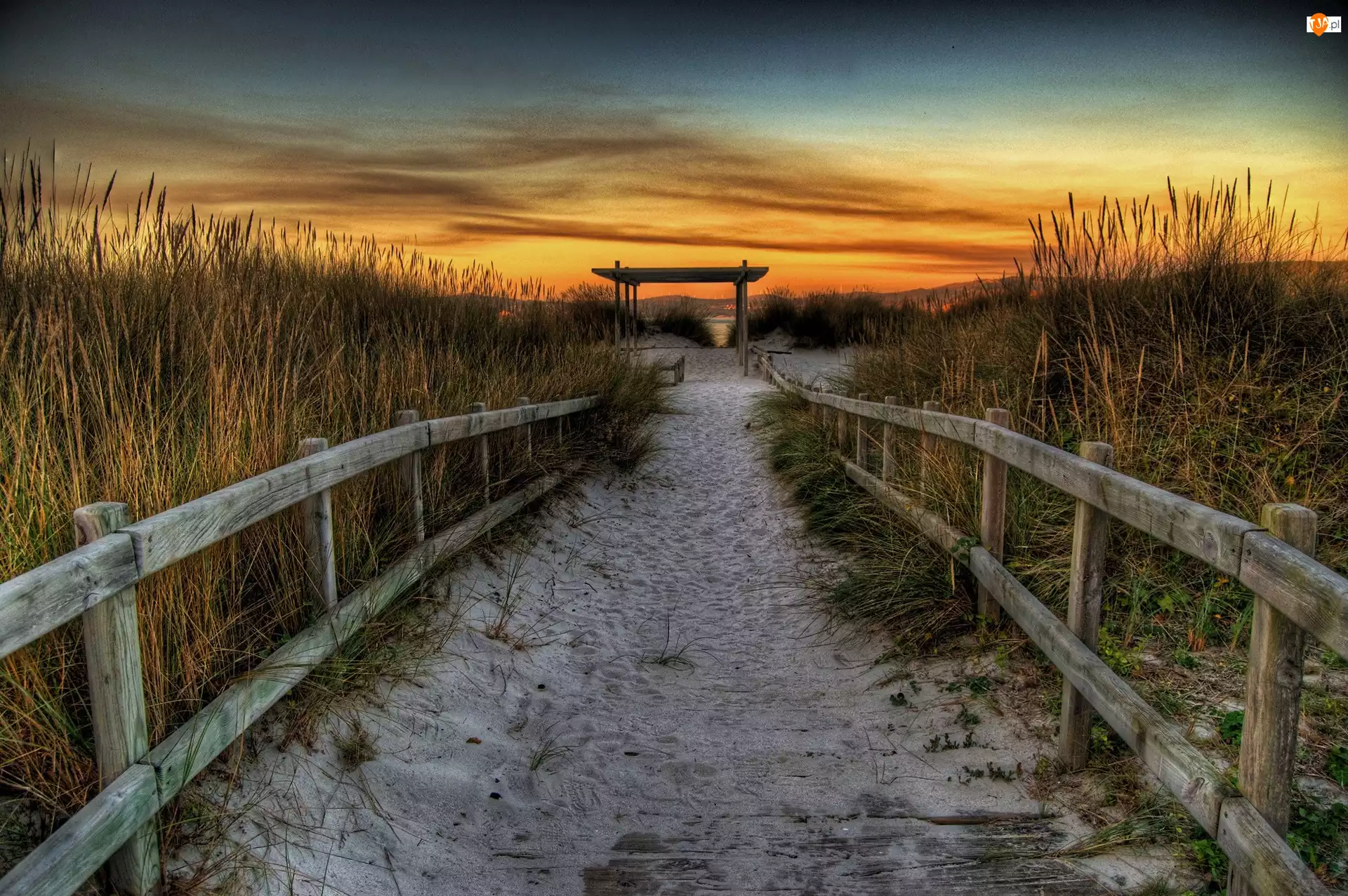Daszek, Zachód, Plaża, Słońca, Trawa