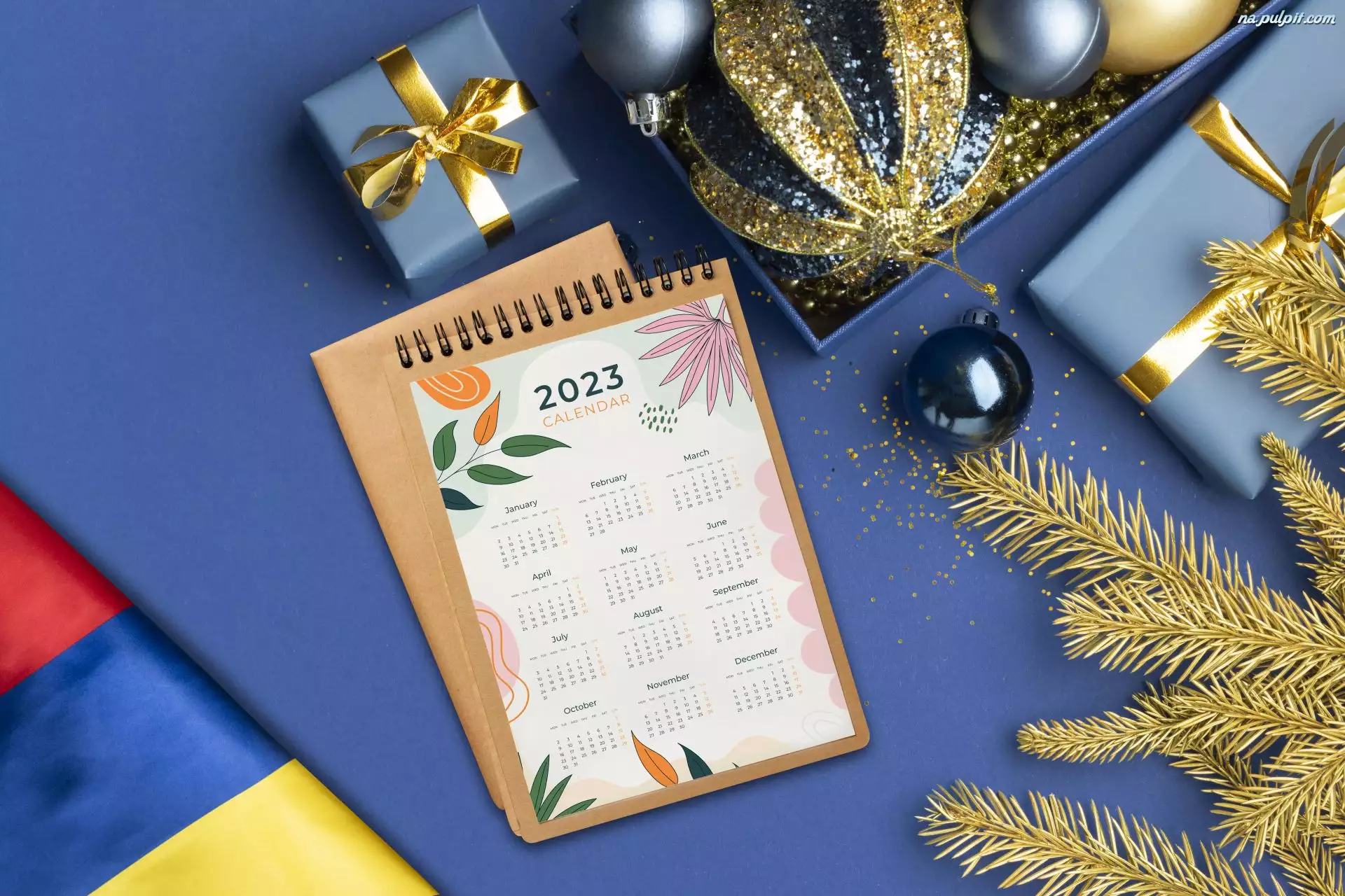 Data, 2023, Bombki, Kalendarz, Szyszki, Gałązki, Prezenty