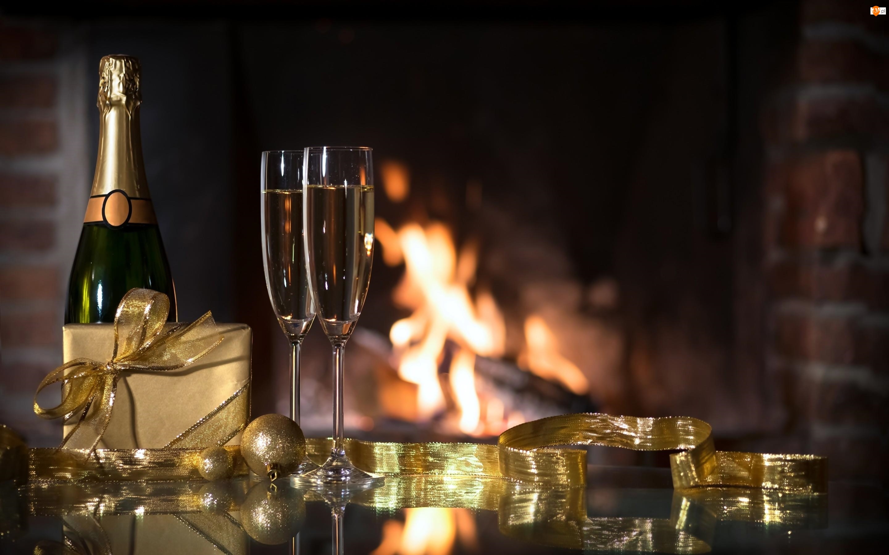 Dekoracja, Szampan, Bombki, Kieliszki, Sylwester
