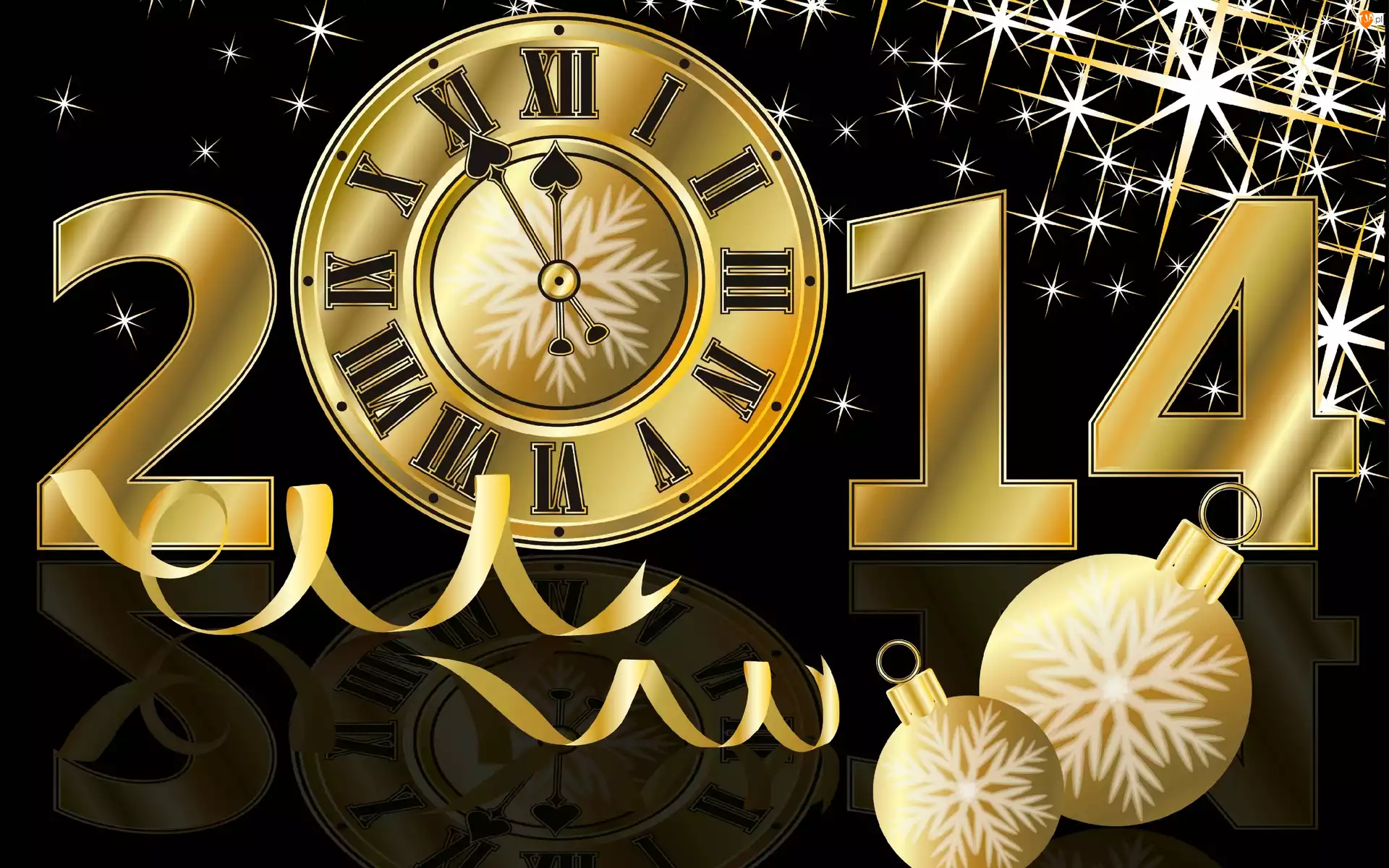 Dekoracja, Zegar, Gwiazdki, Bombki, Sylwester