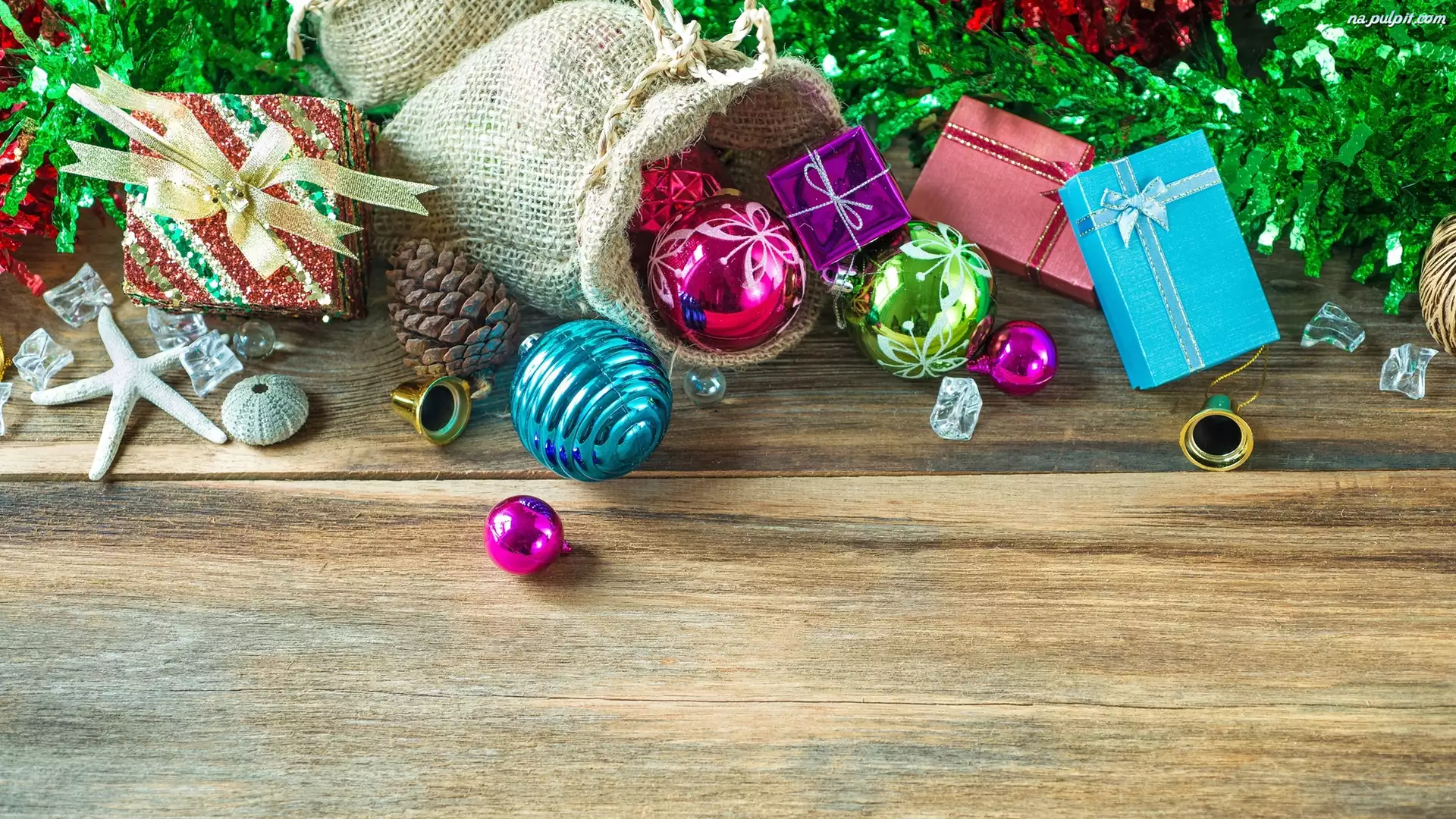Prezenty, Świąteczna, Boże Narodzenie, Kompozycja, Bombki