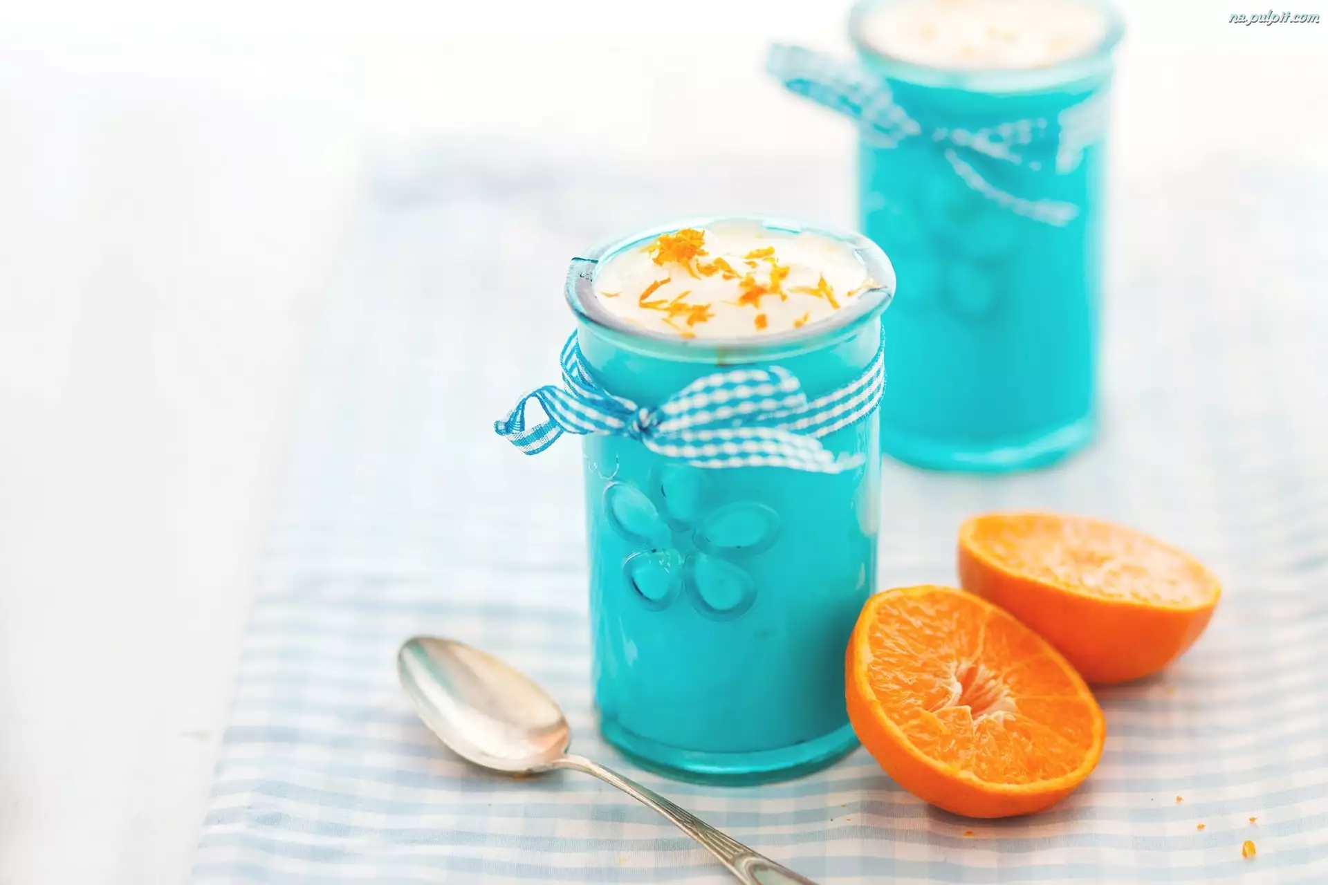 Pomarańcza, Deser, Niebieskie, Szklanki