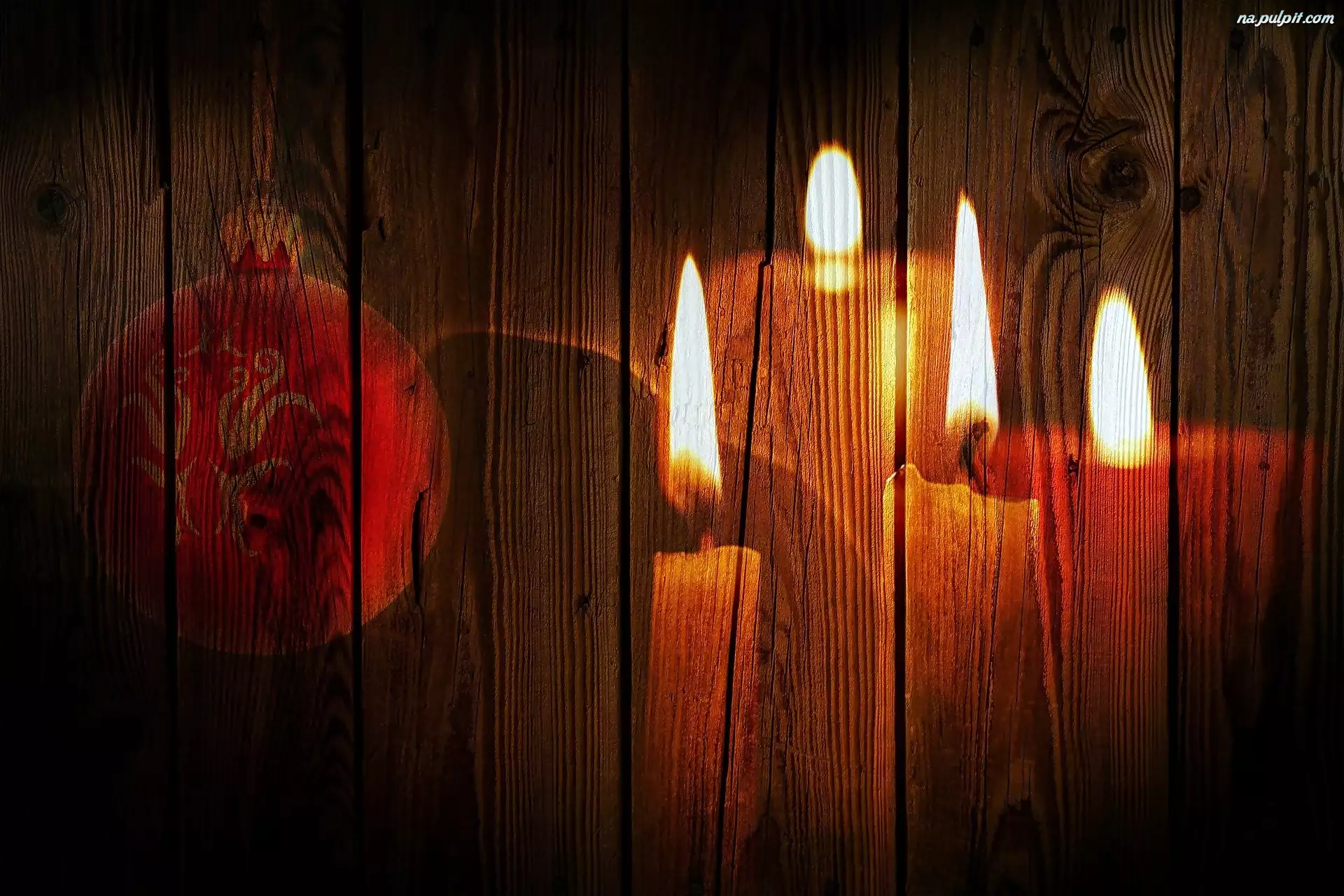 Deski, Świece, Bombka, Grafika