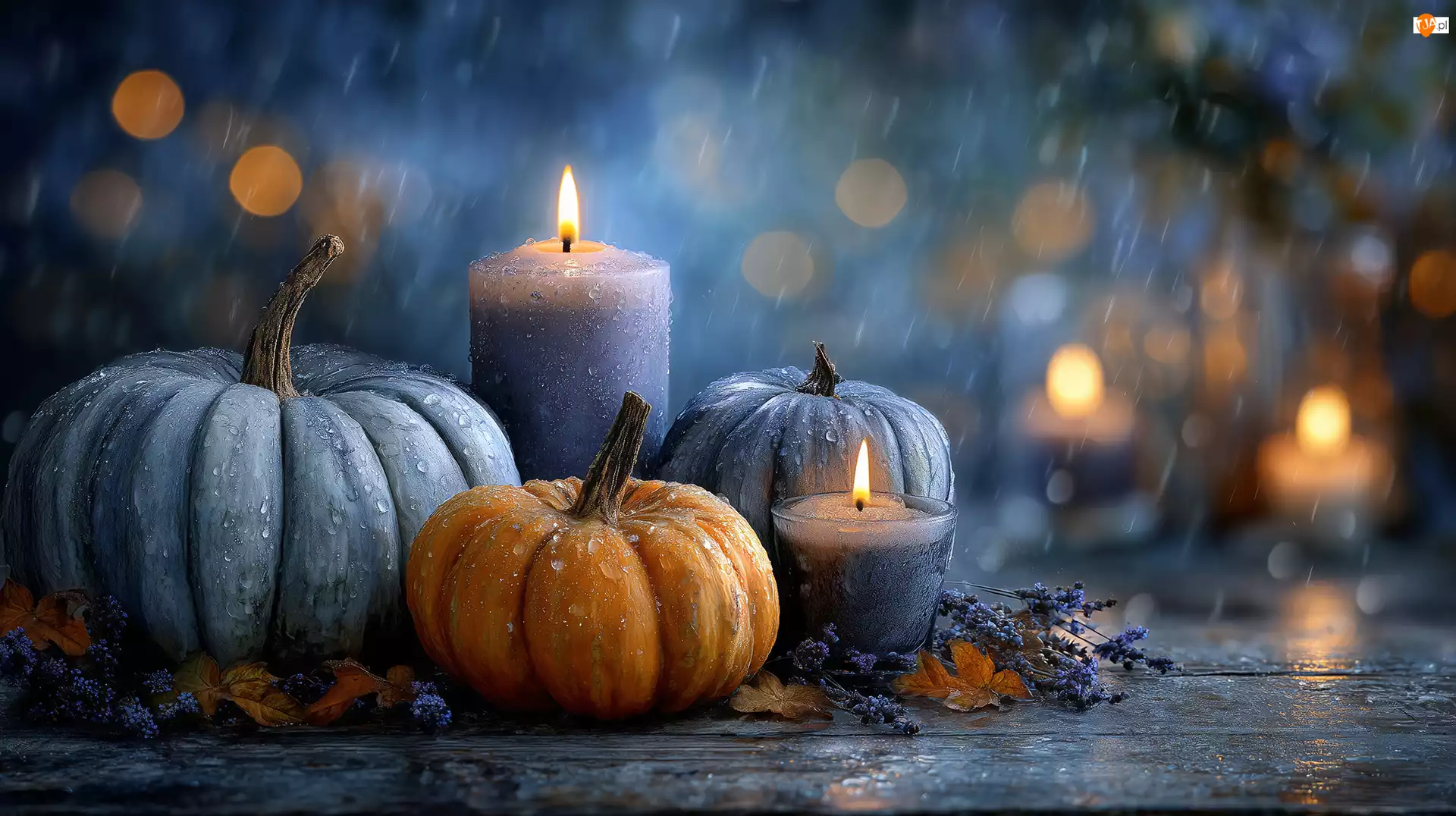 Deszcz, AI, Świece, Dynie, Grafika