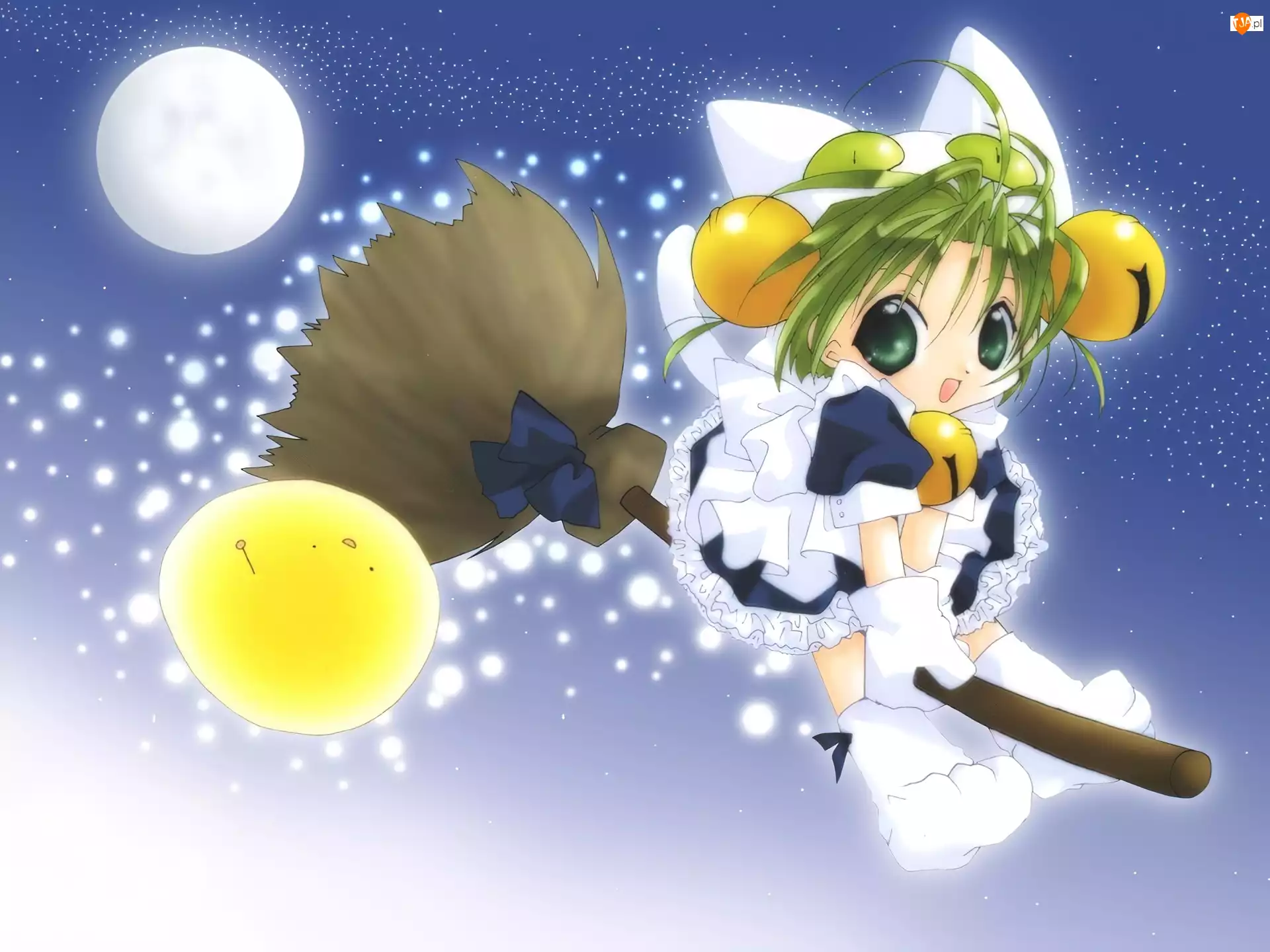 Digi Charat, miotła, pomarańcza, dziewczyna