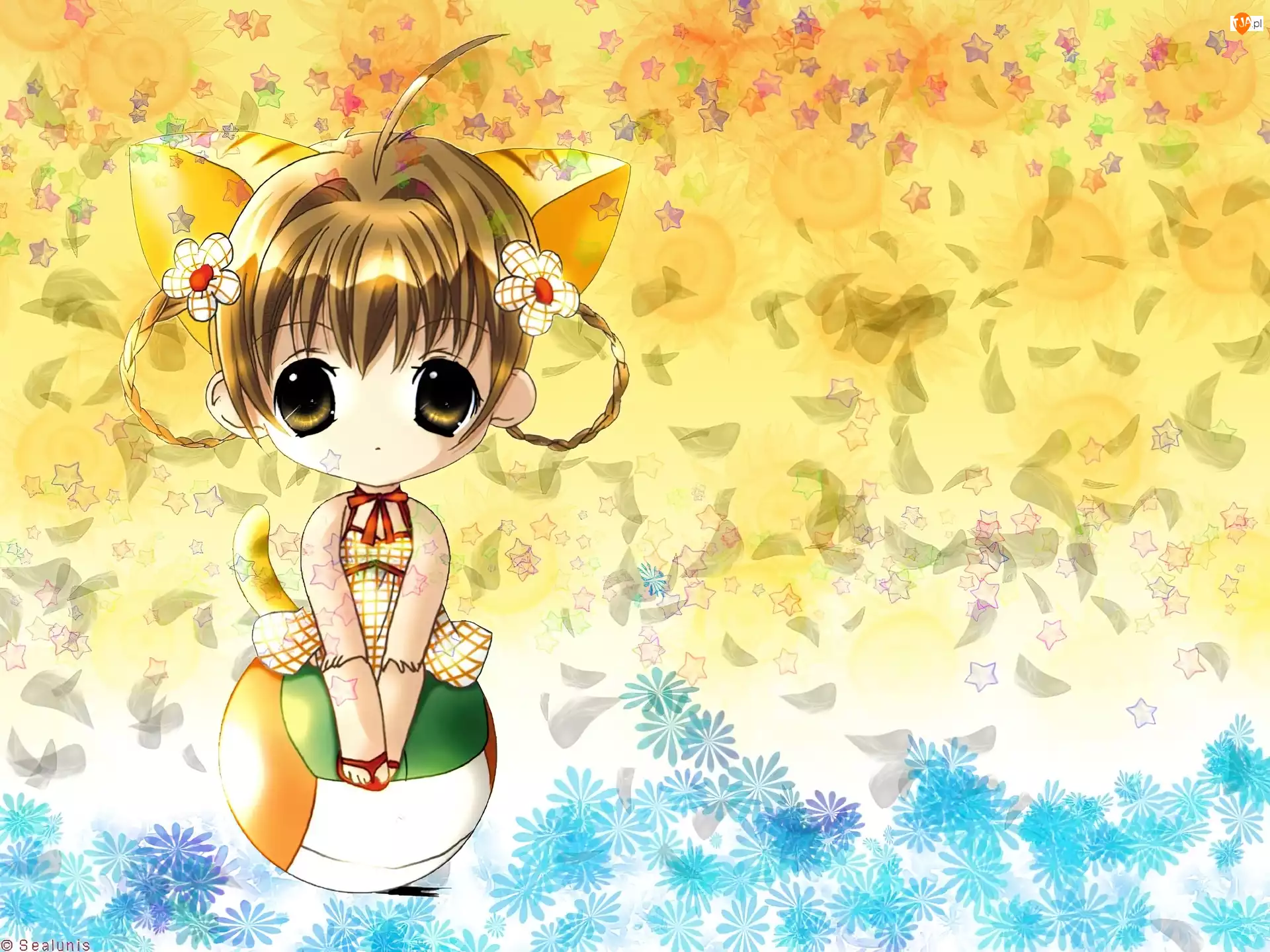 Digi Charat, warkoczyki, dziewczyna, piłka