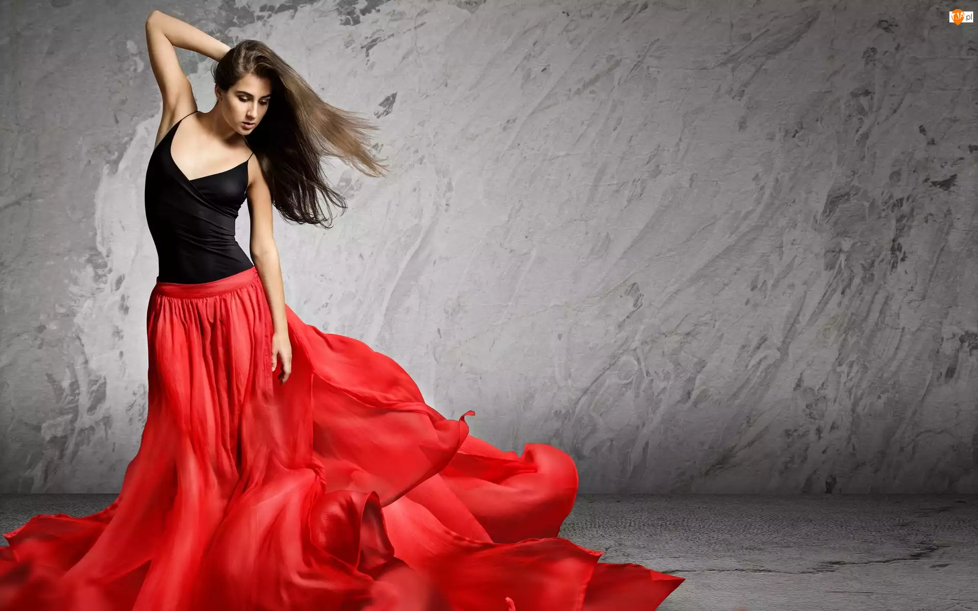 Długowłosa dziewczyna w powłóczystej spódnicy