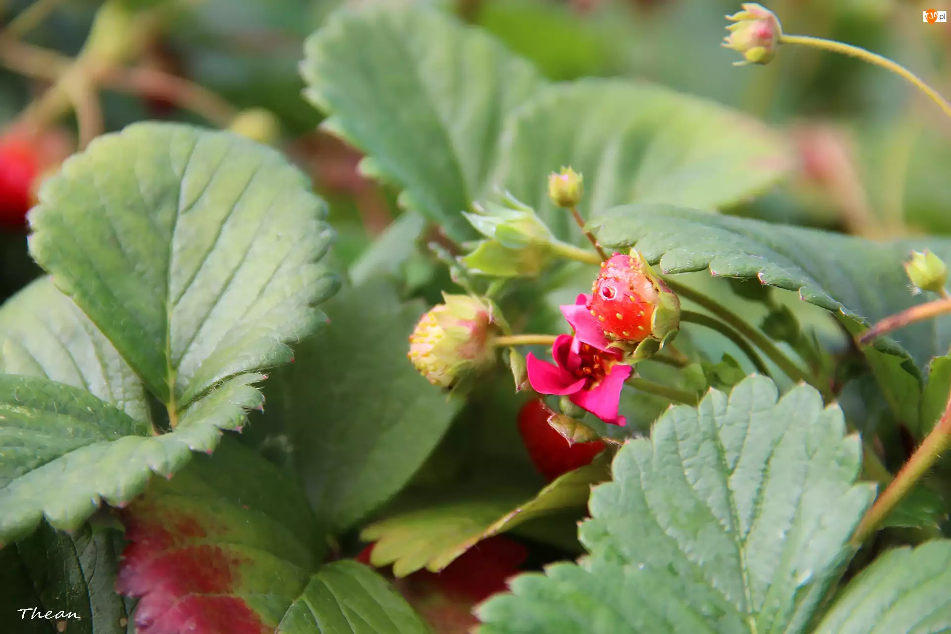 Dojrzewające, Kwiat, Truskawki, Różowy