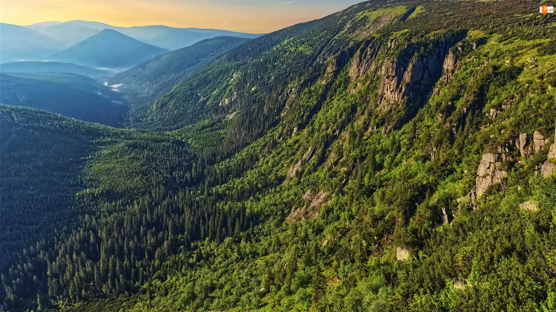 Góry, Zalesione, Lasy, Polska, Karkonosze, Dolina