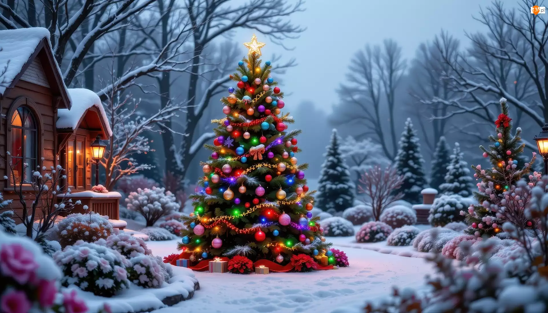 Dom, Boże Narodzenie, Prezenty, AI, Choinki, Zima