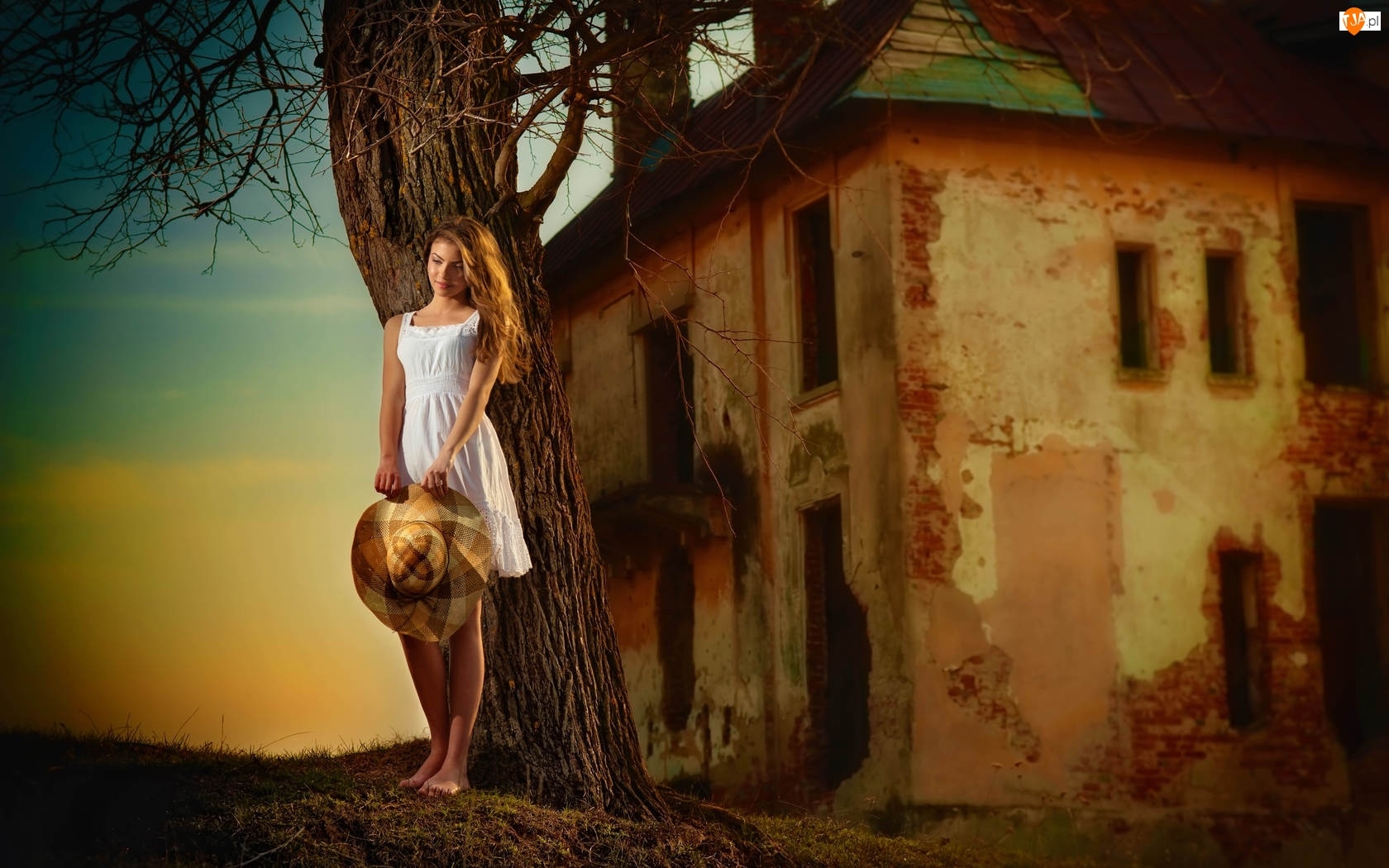 Dom, Kapelusz, Drzewo, Dziewczyna