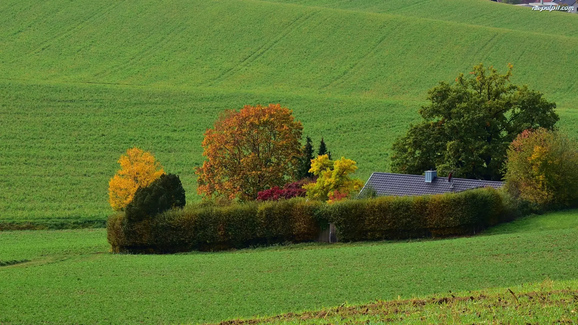 Jesień, Pola, Dom, Drzewa