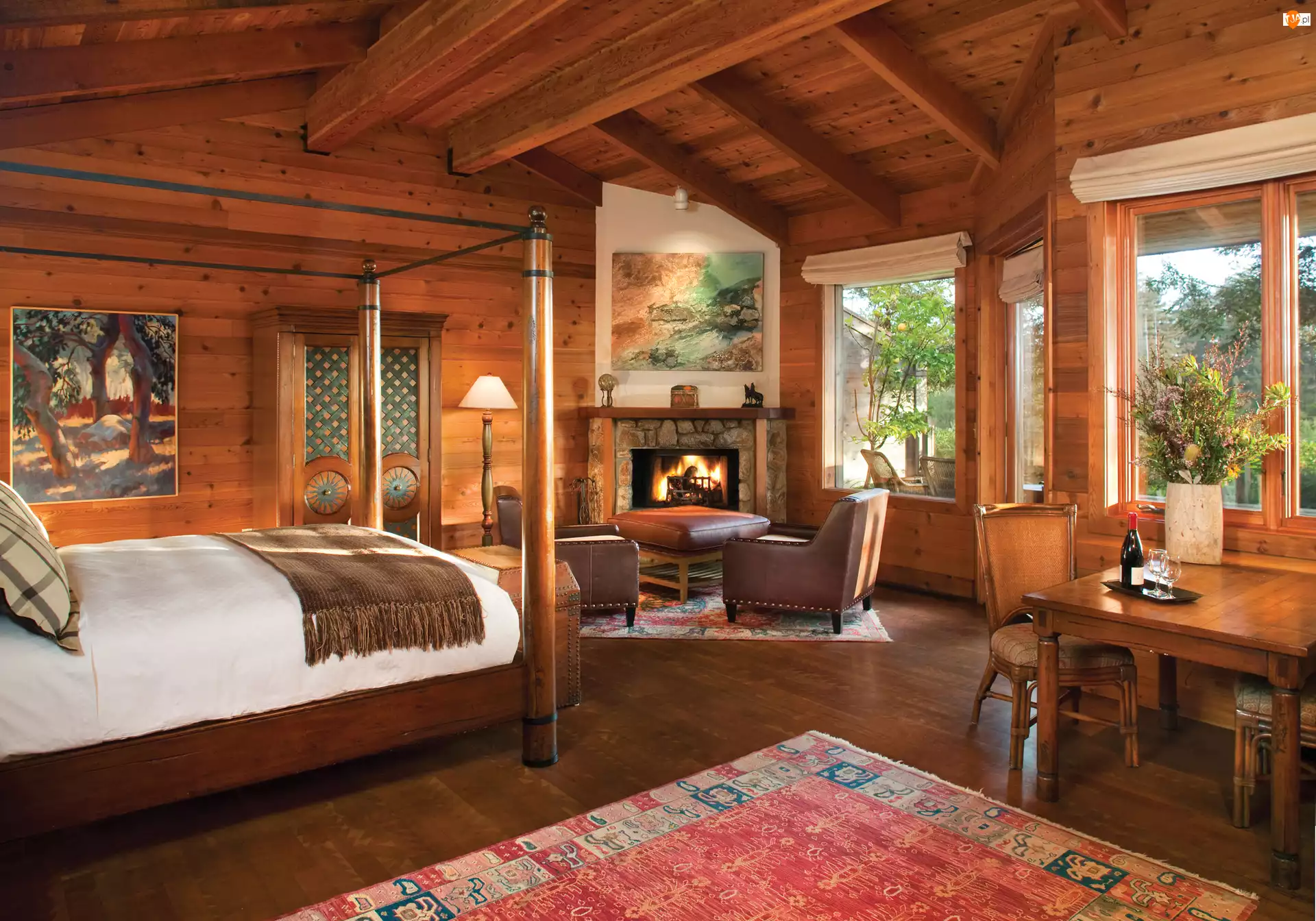 Widok, Sypialnia, Kominek, Okno
