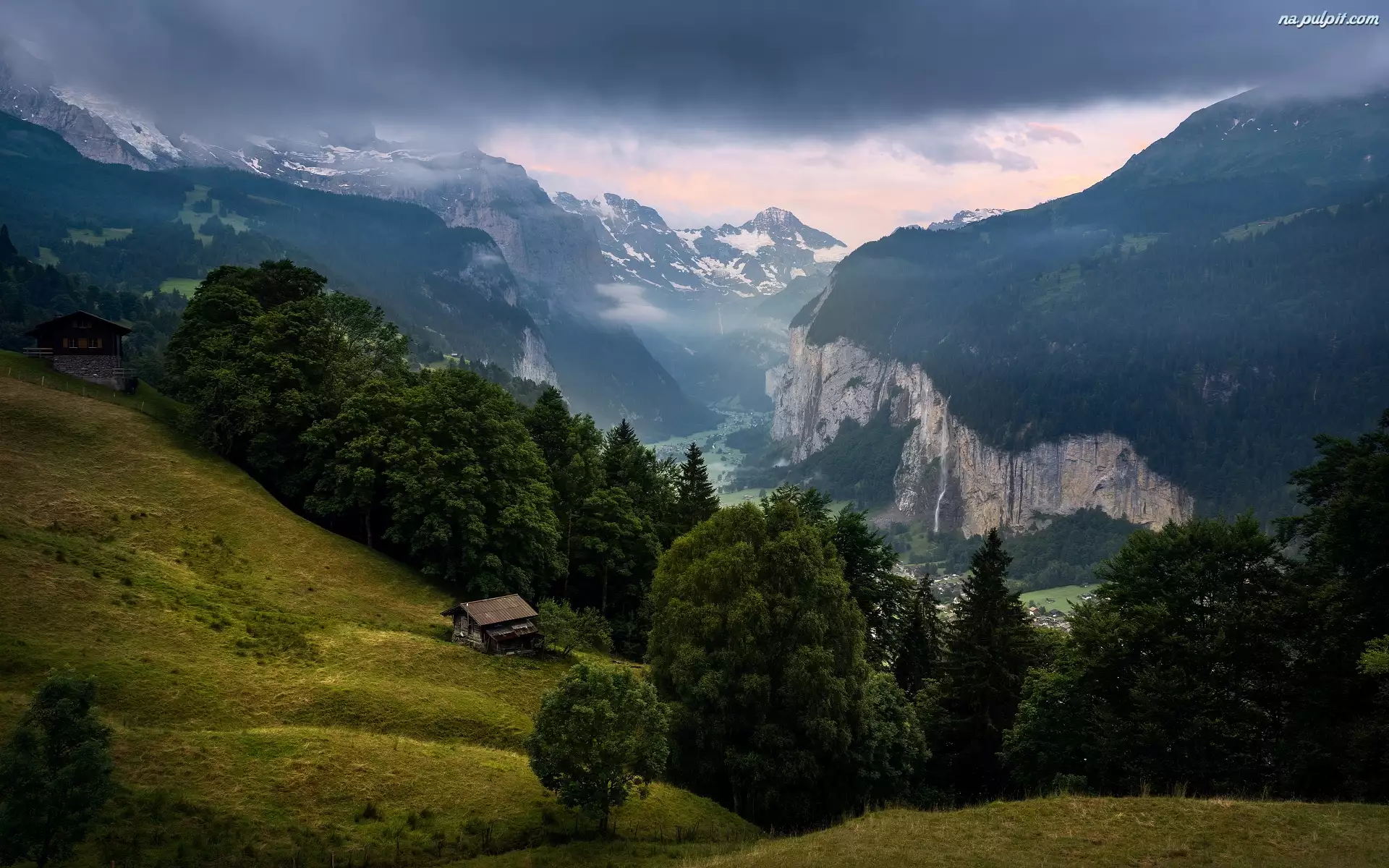 Domy, Gmina Lauterbrunnen, Drzewa, Dolina Lauterbr