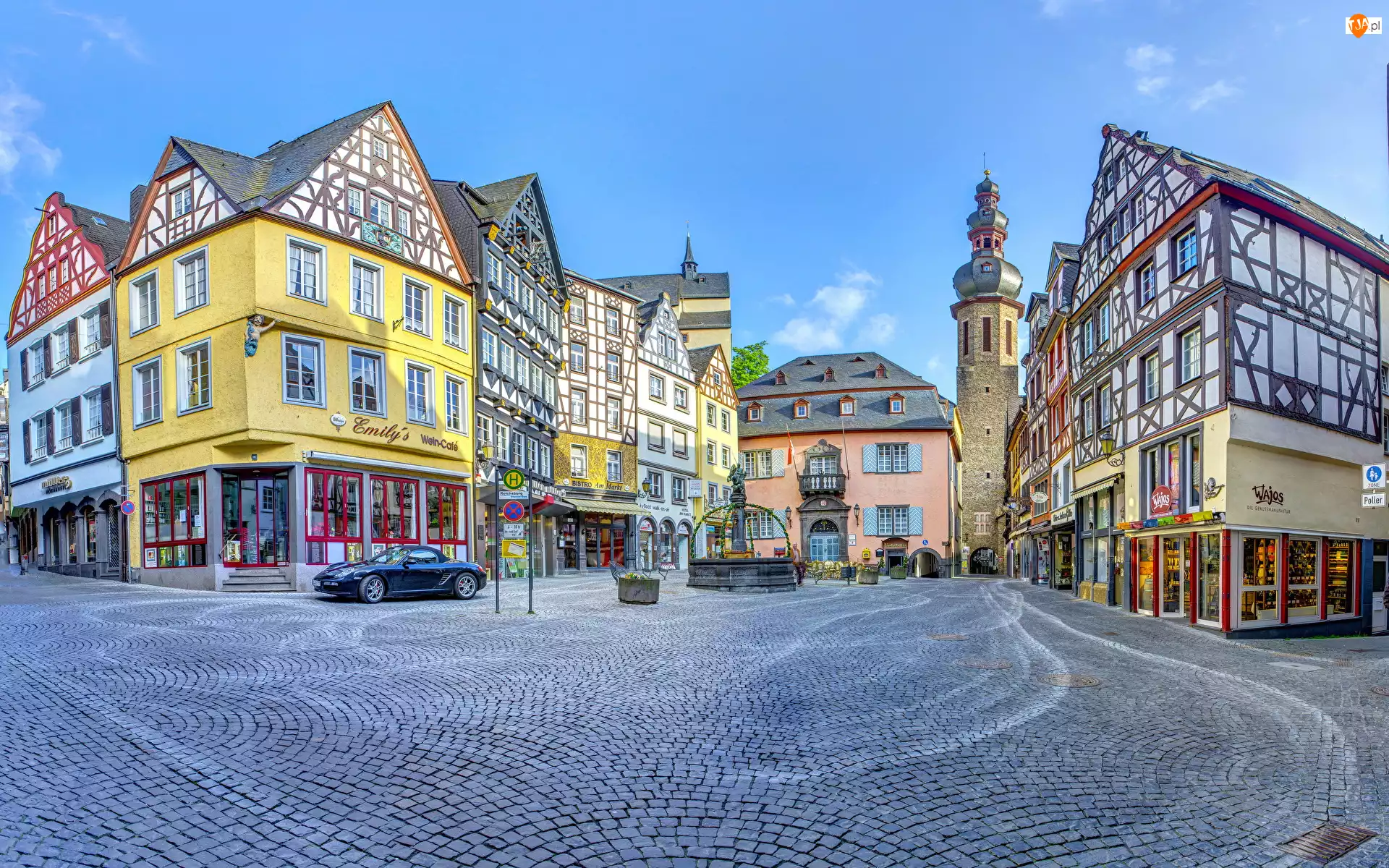Cochem, Rynek, Ulica, Niemcy, Brukowana, Domy, Wieża