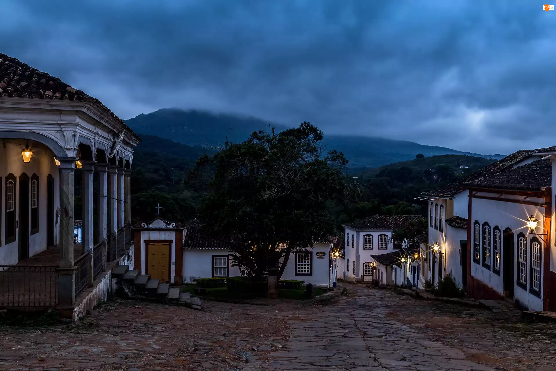 Noc, Brazylia, Stan Minas Gerais, Miasteczko Tiradentes Domy